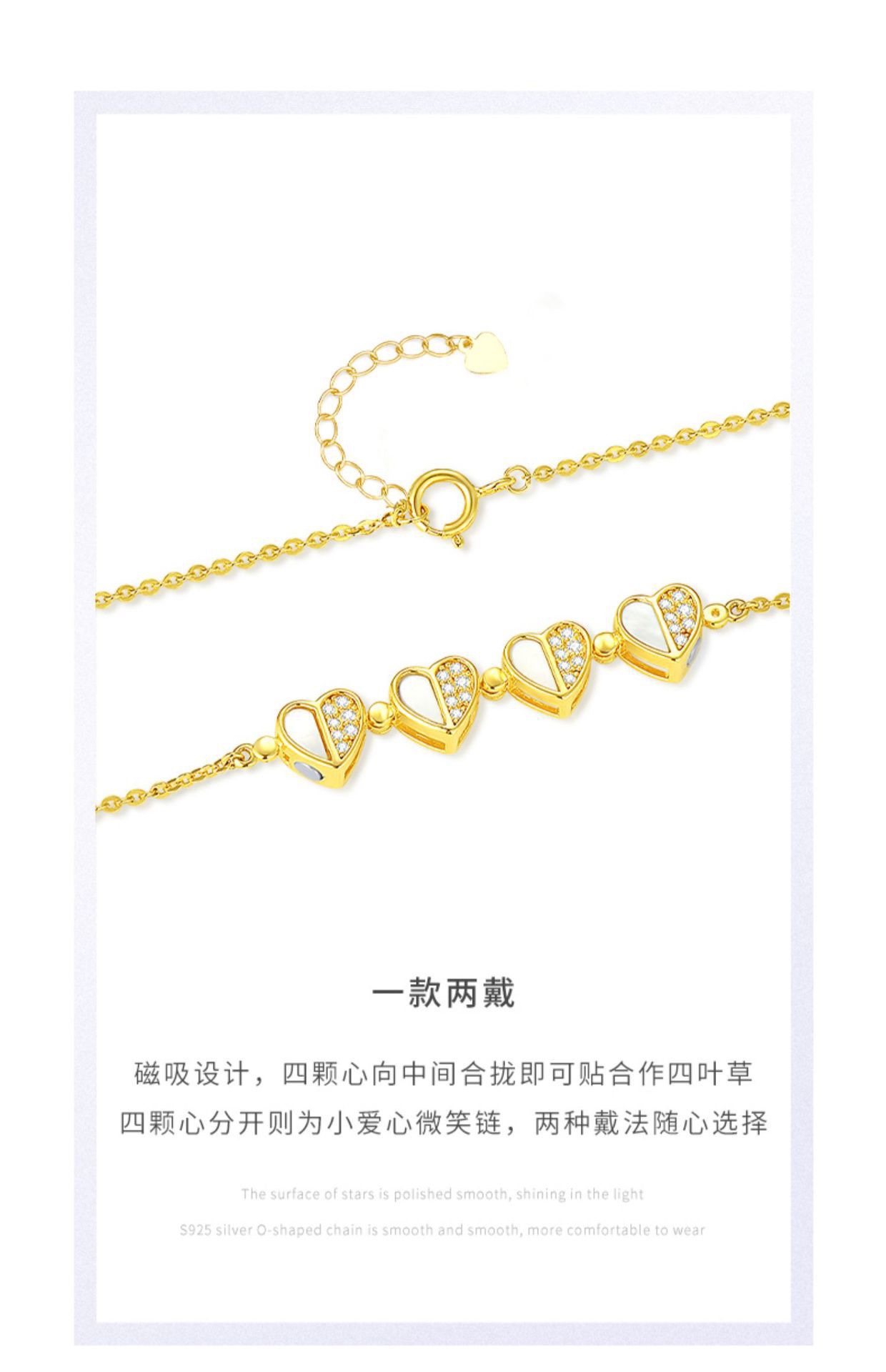 卡蒂罗/KADER 祈运四叶草项链 心动幸运草纯银镶嵌闪锆通勤百搭小众设计可拆爱心锁骨链 贝壳心形链一款两戴#好运 商品图4