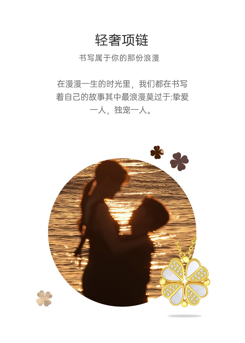 卡蒂罗/KADER 祈运四叶草项链 心动幸运草纯银镶嵌闪锆通勤百搭小众设计可拆爱心锁骨链 贝壳心形链一款两戴#好运 商品图2