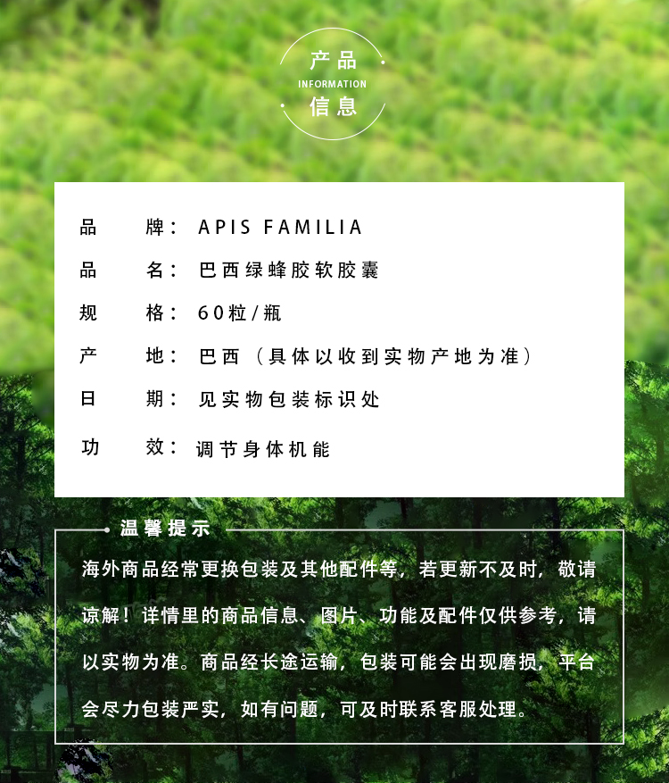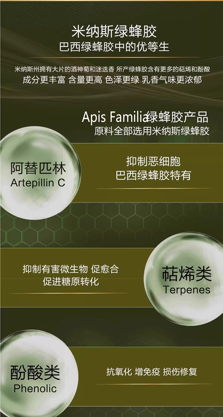 APIS FAMILIA巴西蜂胶软胶囊 原装进口 APIS高浓度绿蜂胶液 保健品礼盒 高浓度绿蜂胶1瓶(CDF)