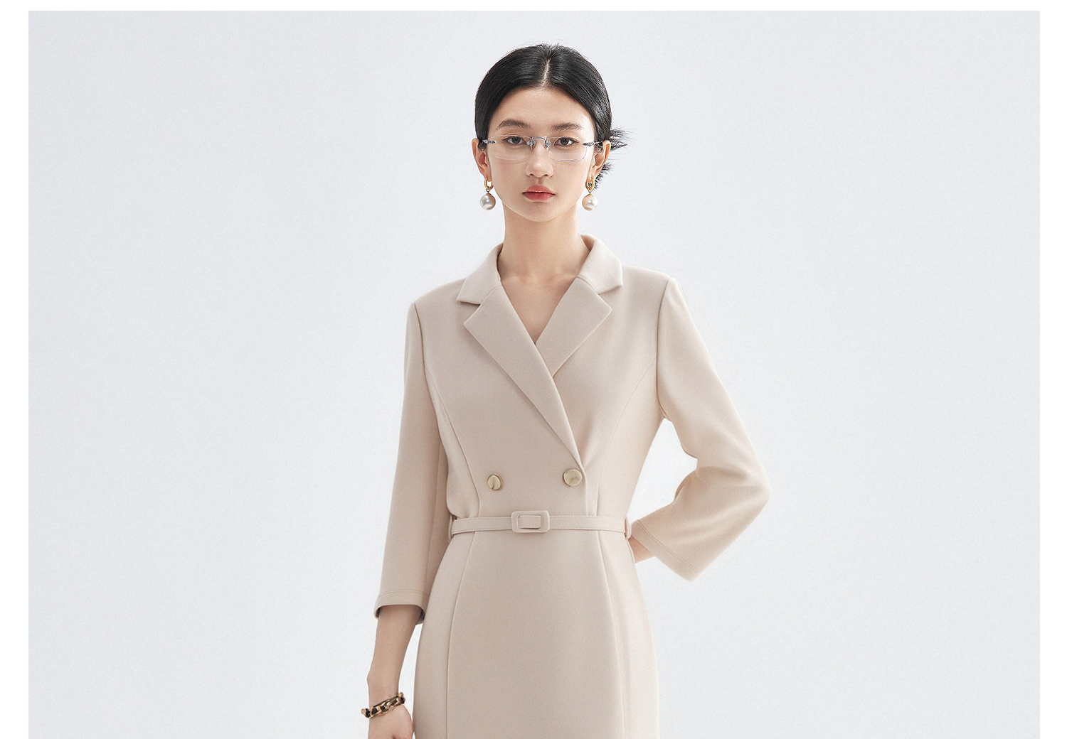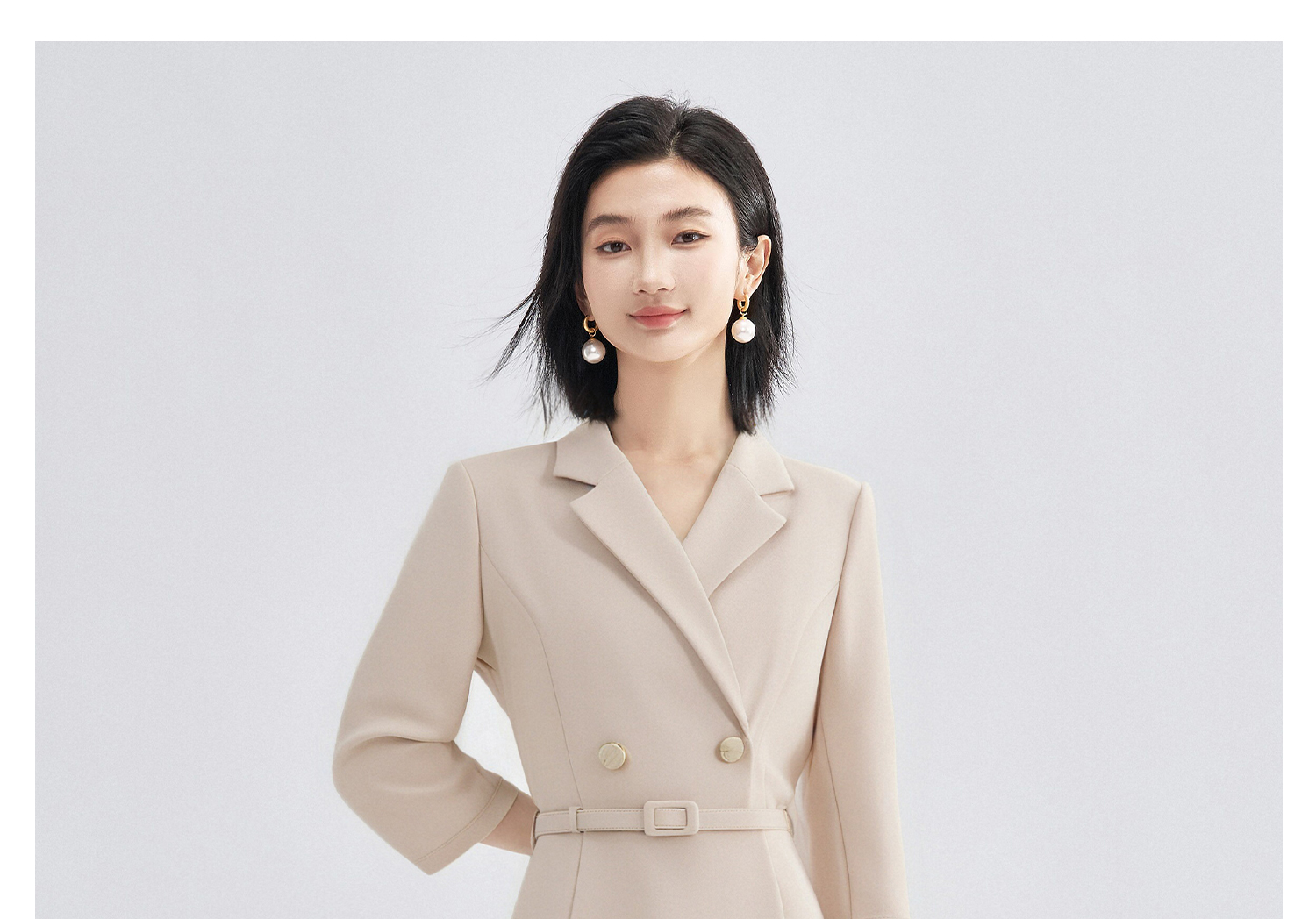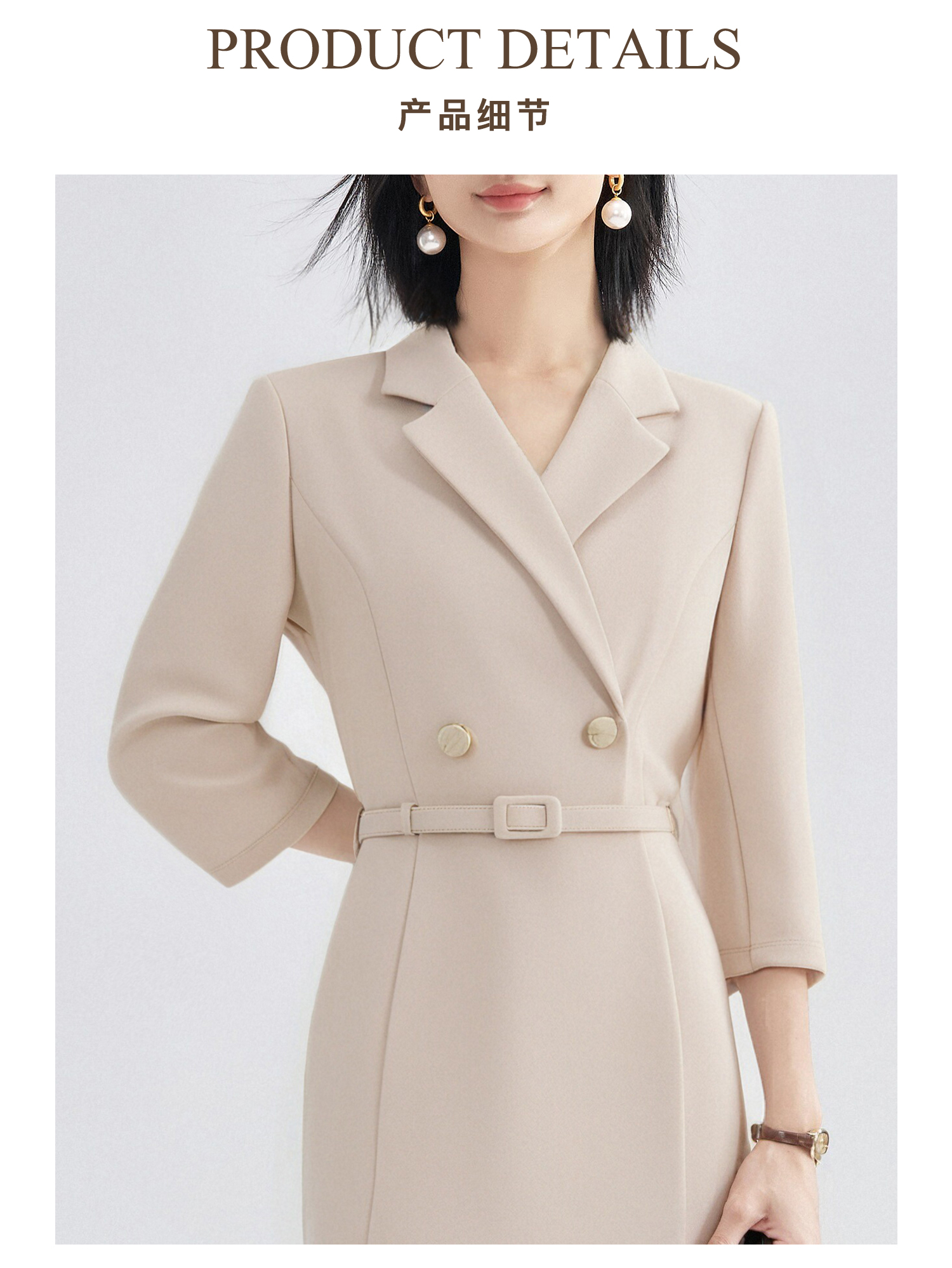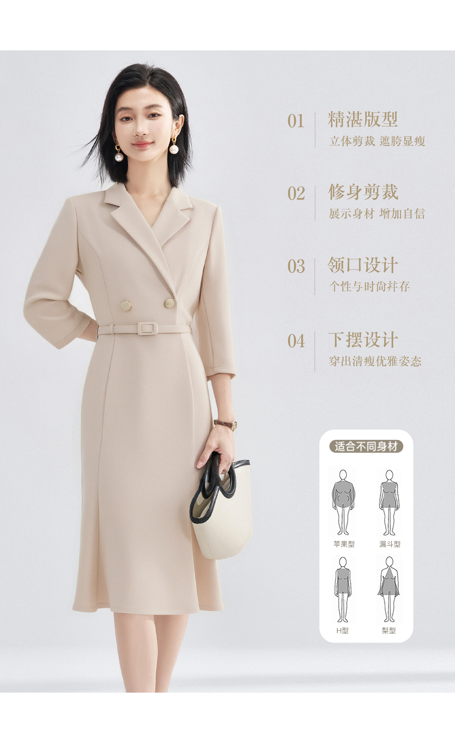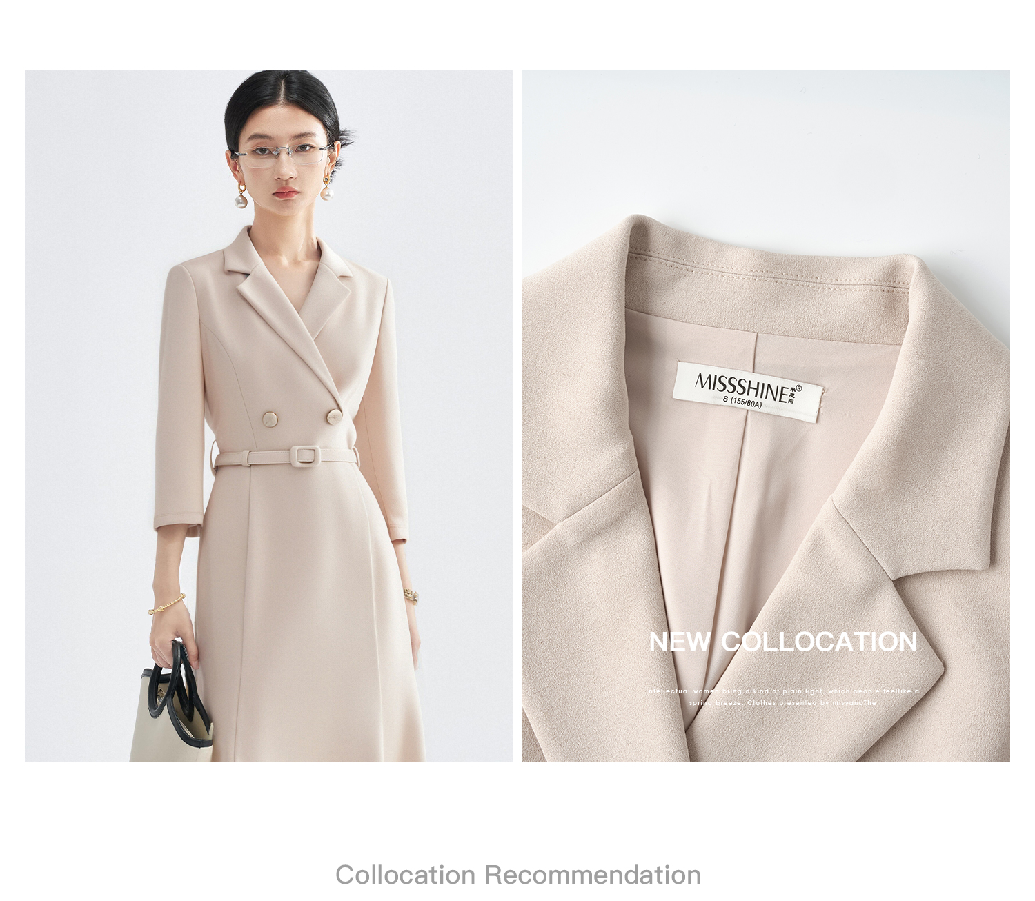「杏影绰约」西装裙 米思阳2026春季新款气质通勤西装连衣裙简约高级感长袖正装裙子女4243