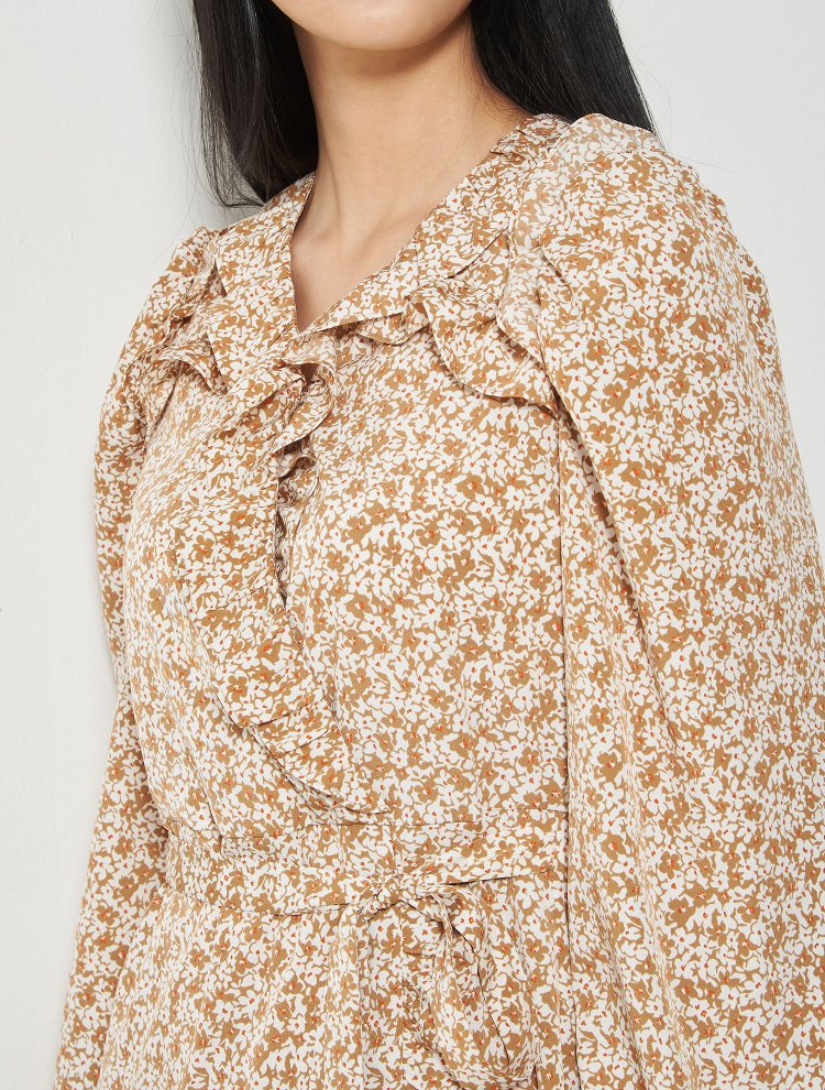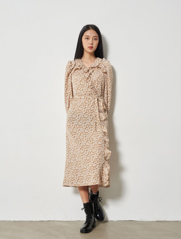 8seconds Floral Dress米色花卉荷叶边肩带长连衣裙女款JPY带授权招加盟代理