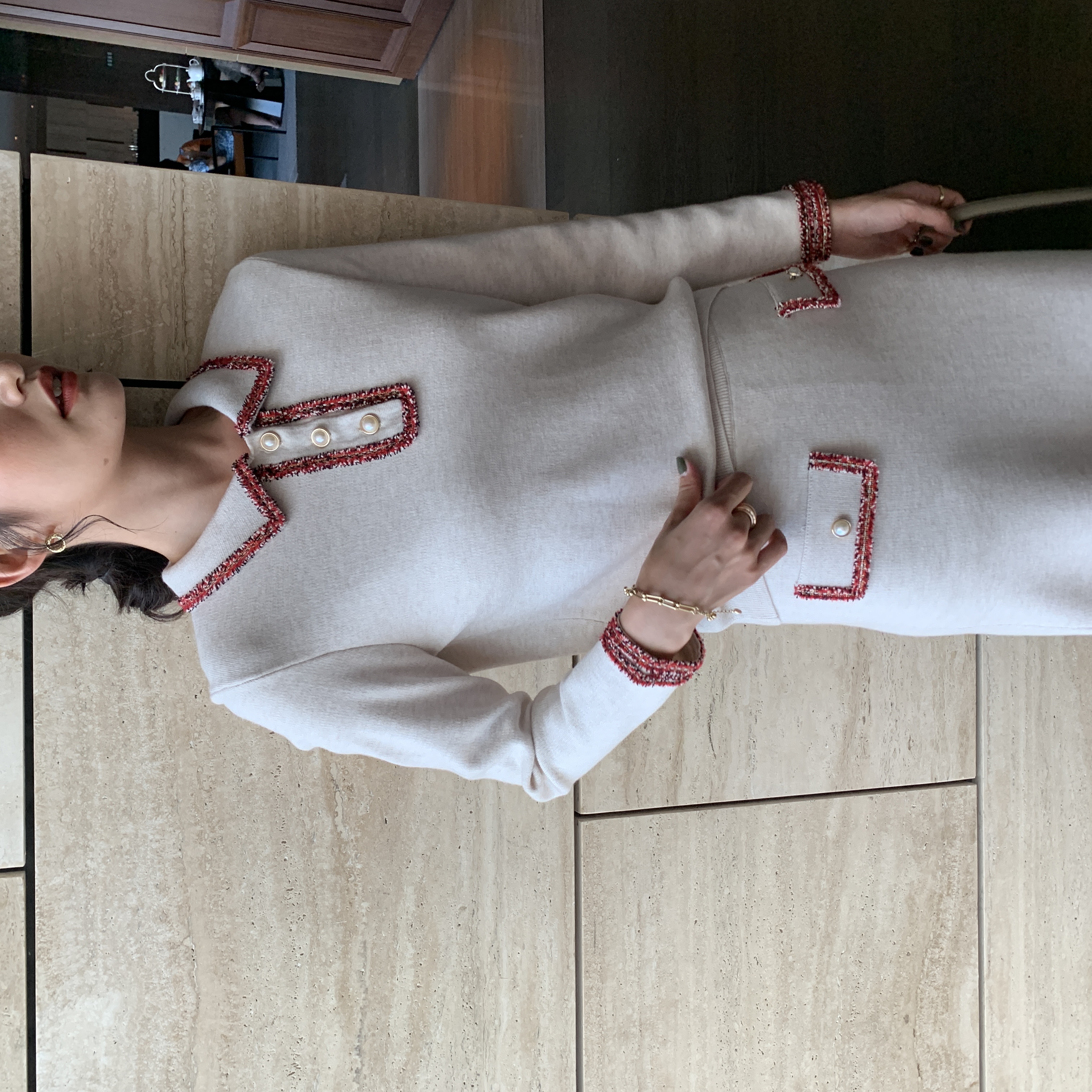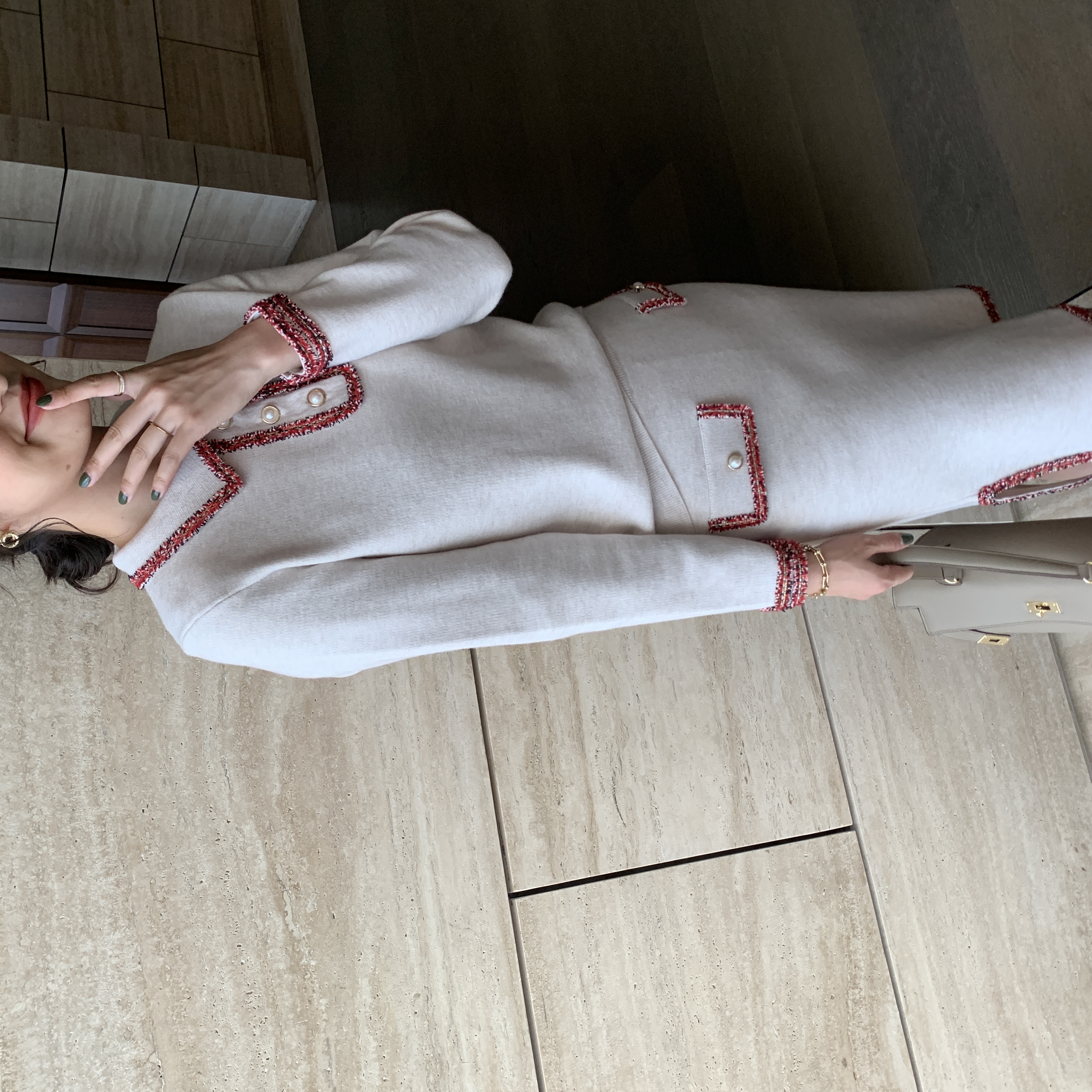 欧芮儿春新款两减套小香风时尚套女长袖上衣+显瘦半身裙