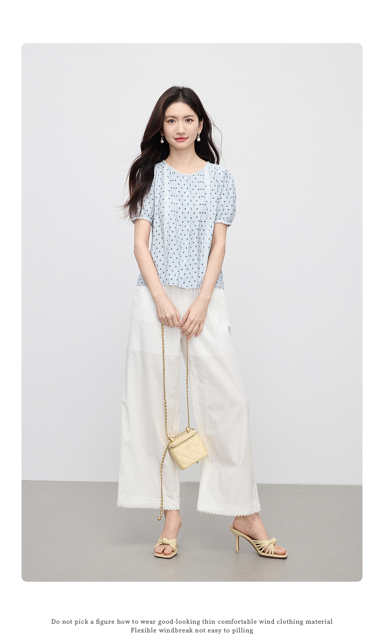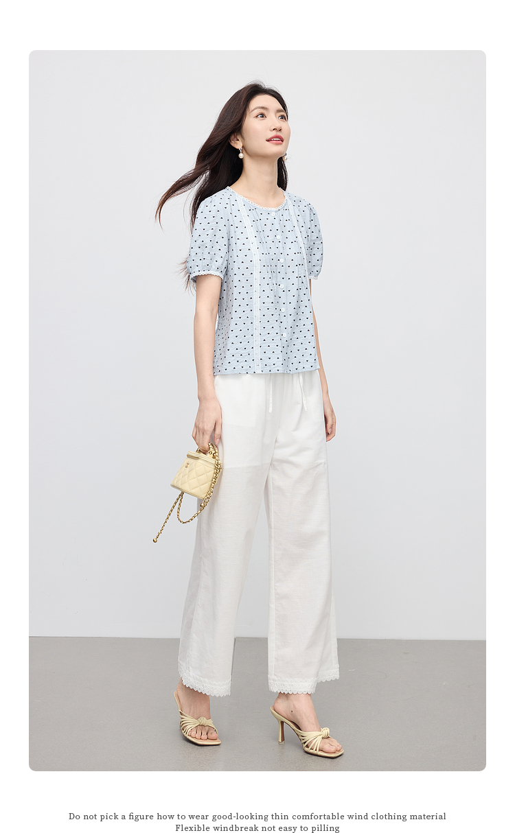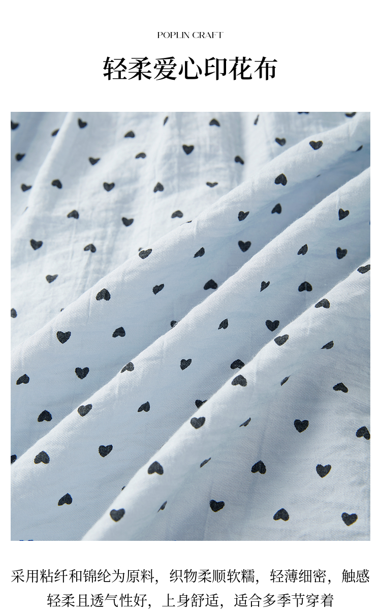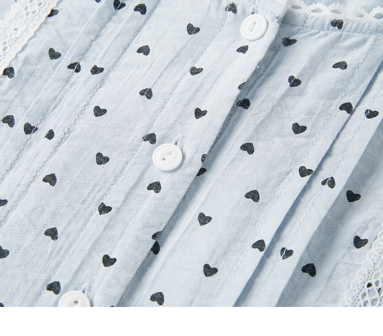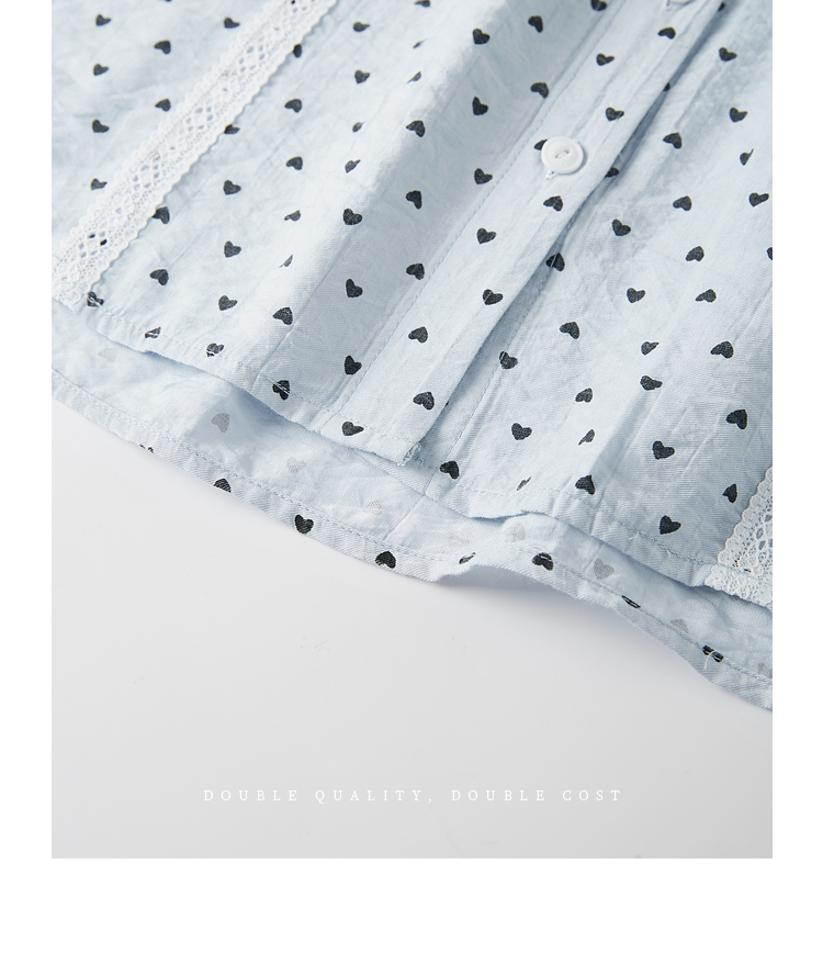 熙世界爱心印花泡泡袖衬衫女夏季设计感小众蕾丝花边圆领气质小衫
