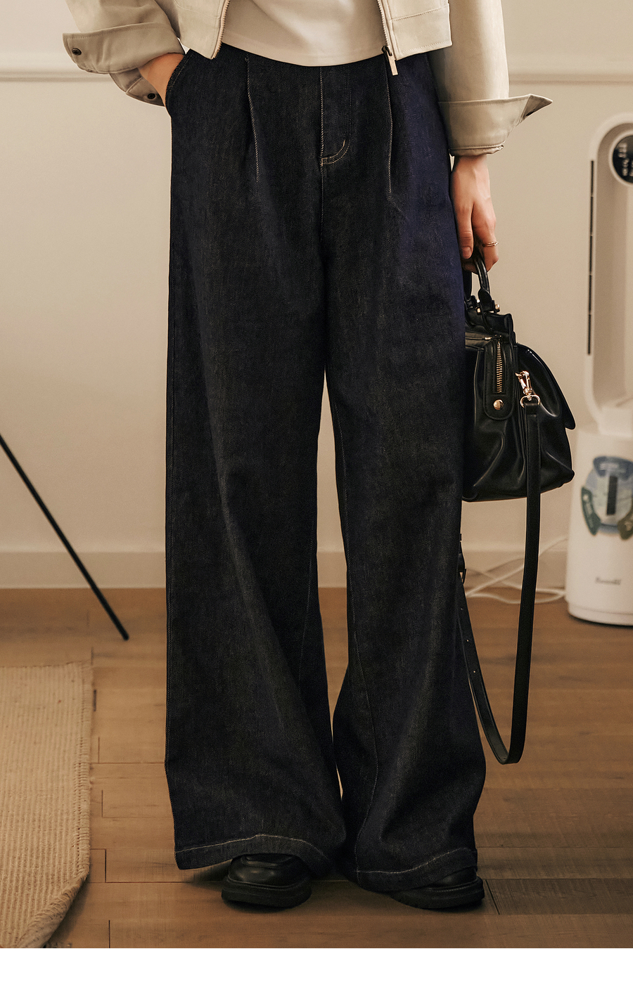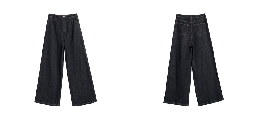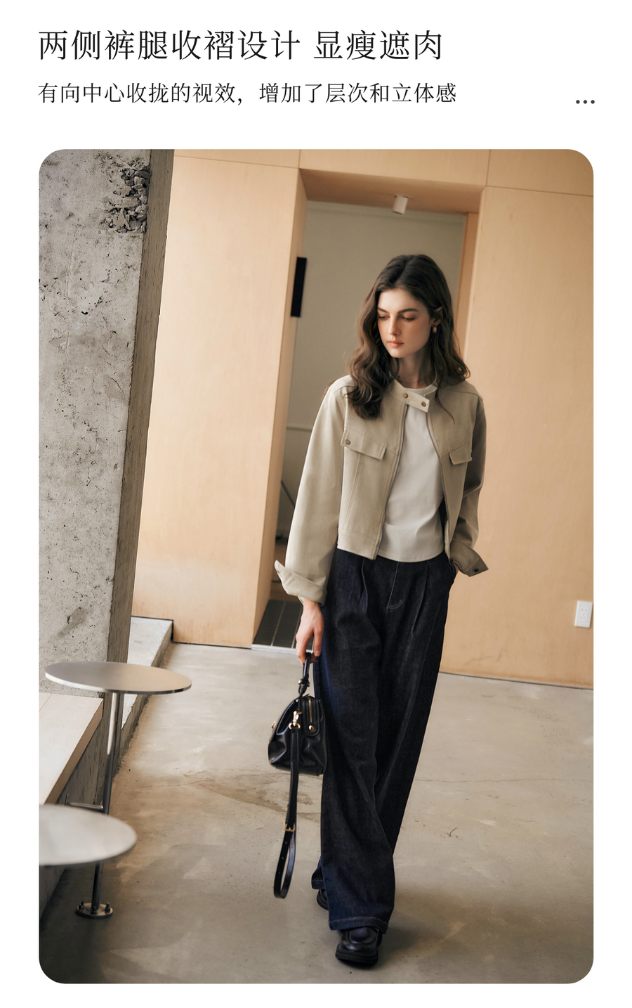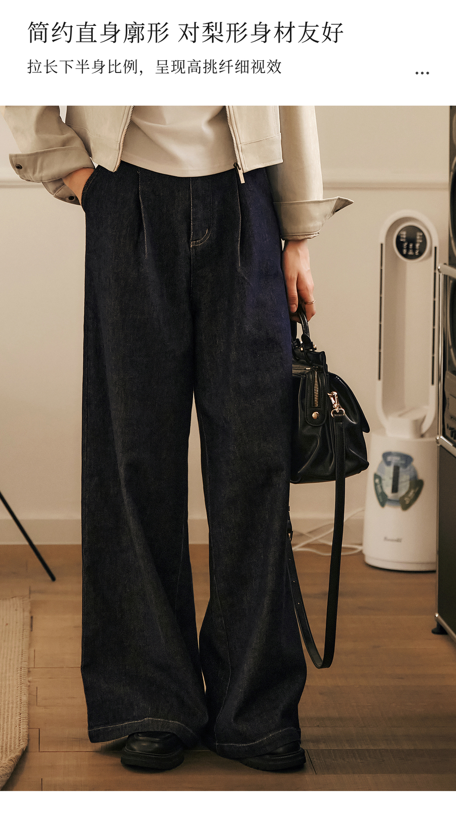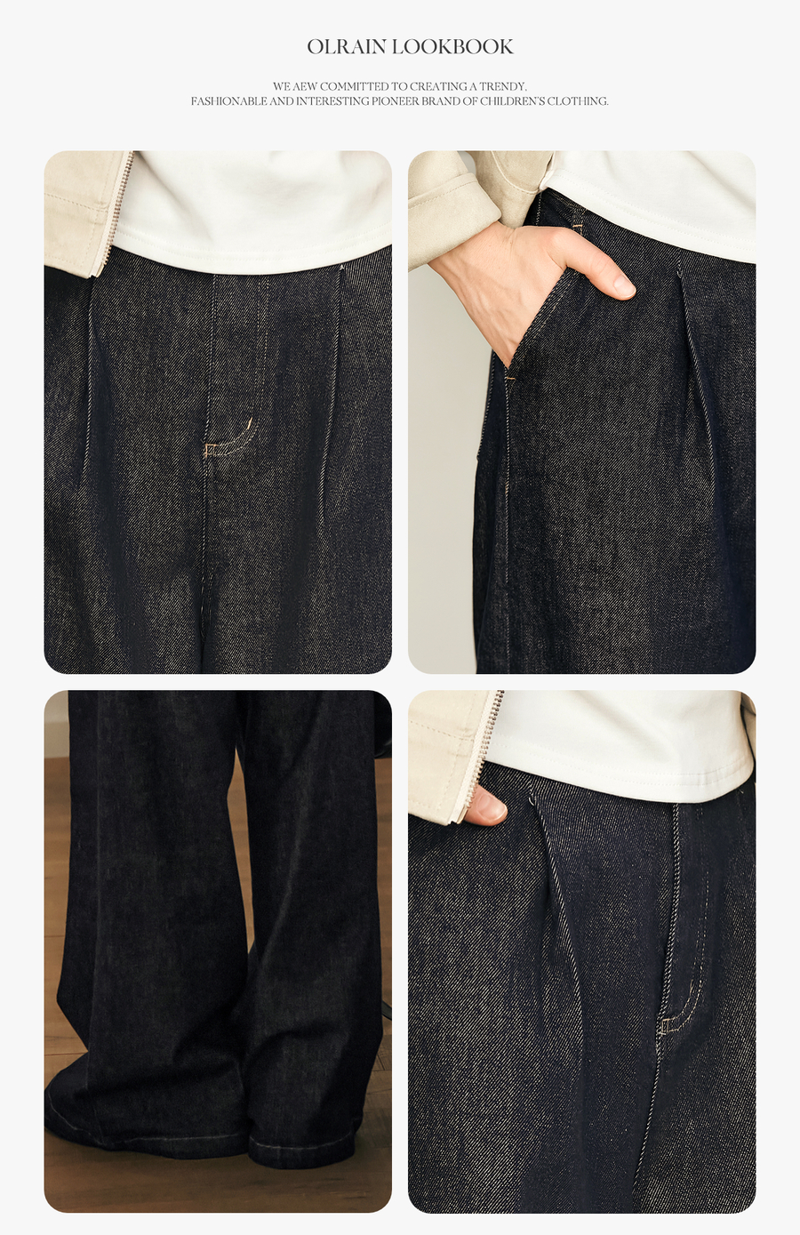 OLrain欧芮儿蓝色牛仔裤女春季2025年新款通勤设计感收褶阔腿裤