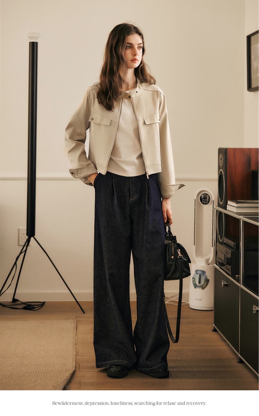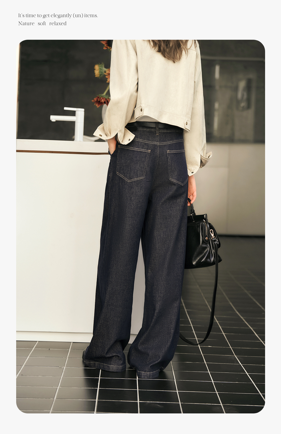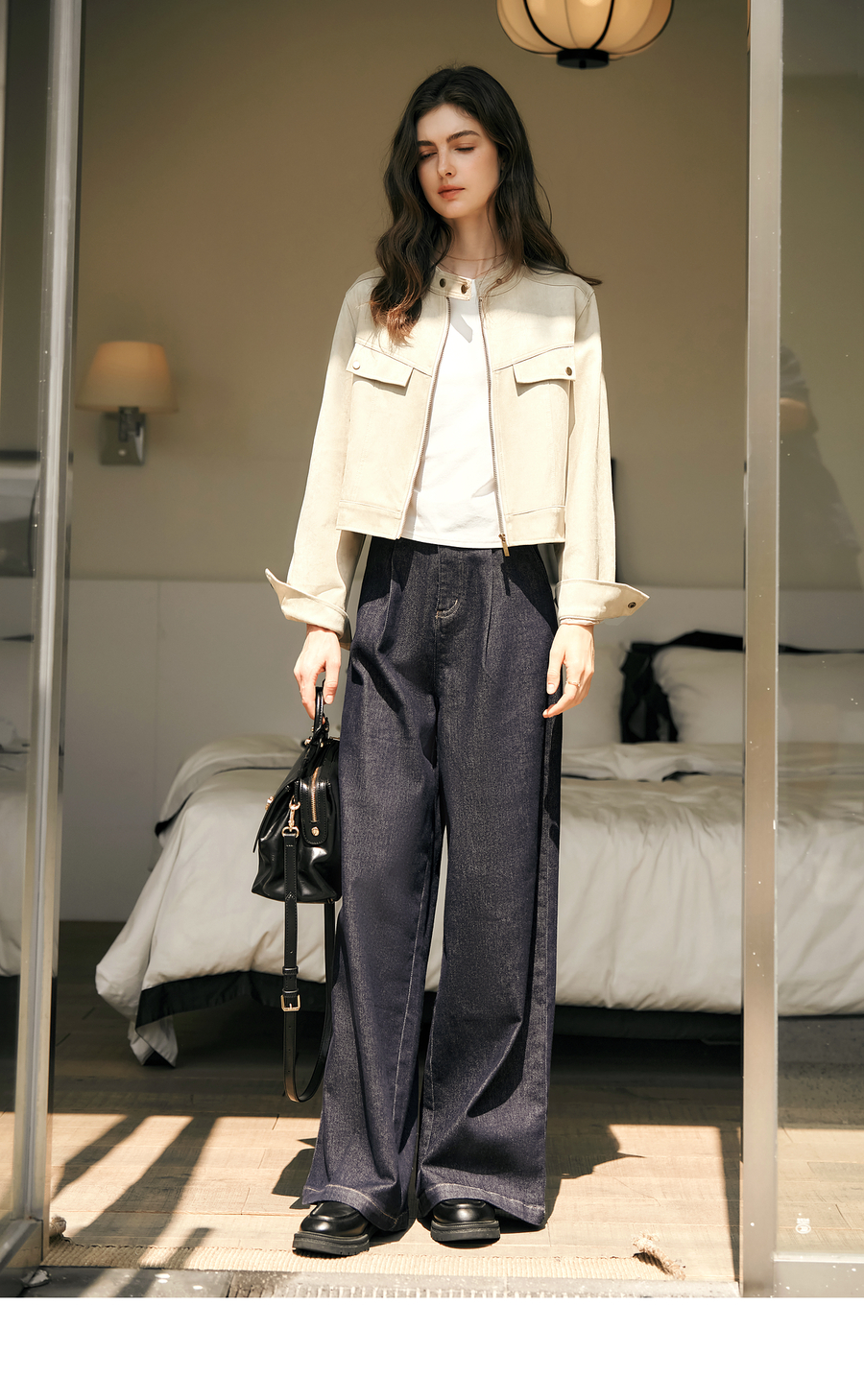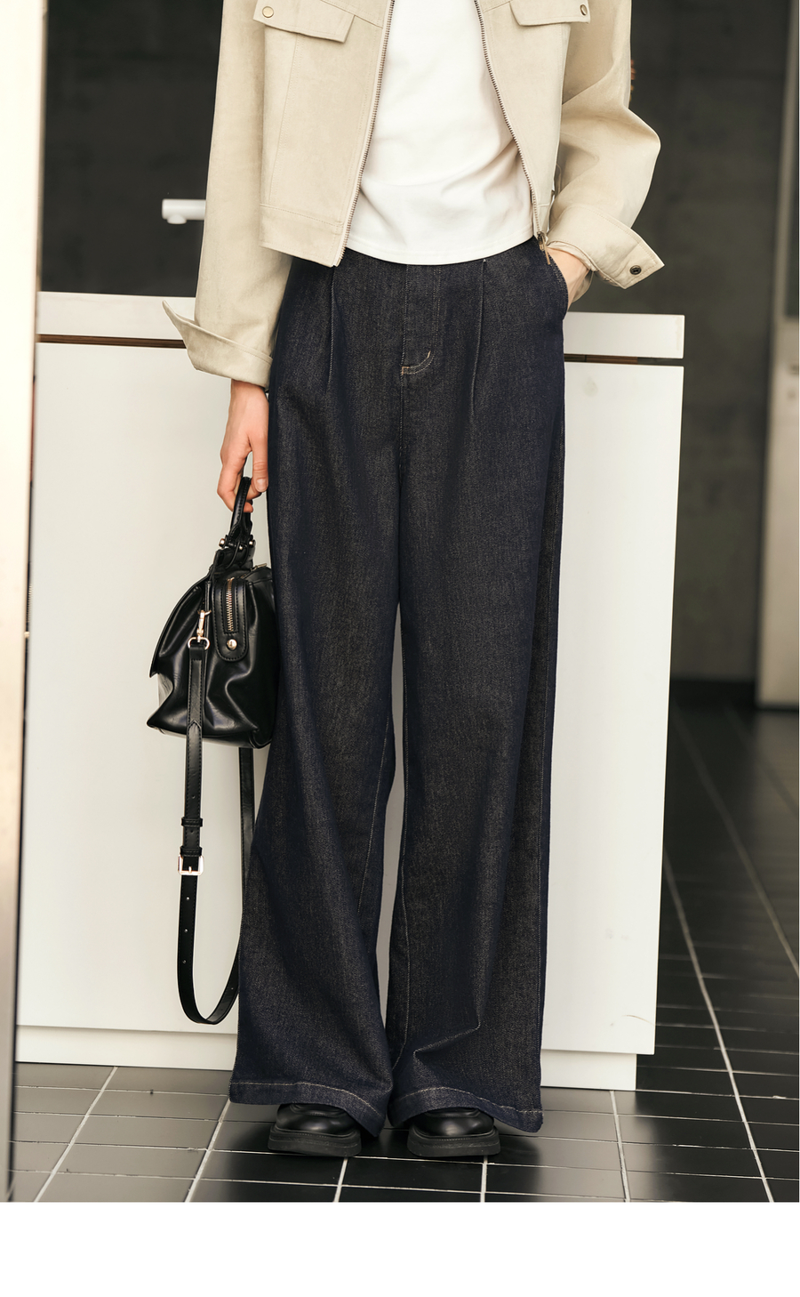 OLrain欧芮儿蓝色牛仔裤女春季2025年新款通勤设计感收褶阔腿裤