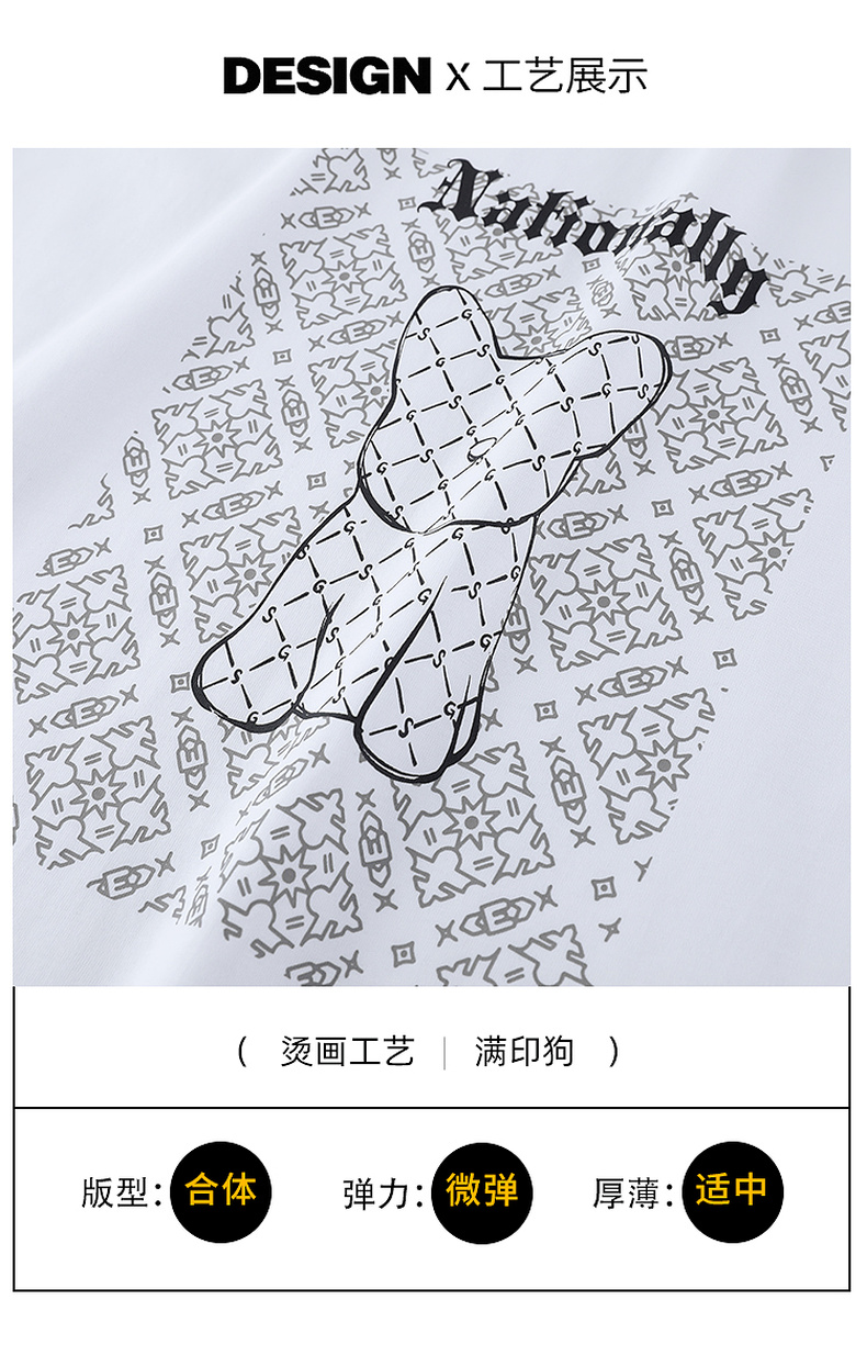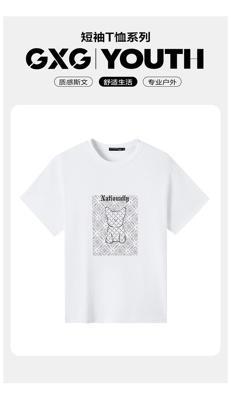 GXG男装【经典格纹小狗】夏季时尚卡通动物男款圆领纯棉短袖t恤K&C