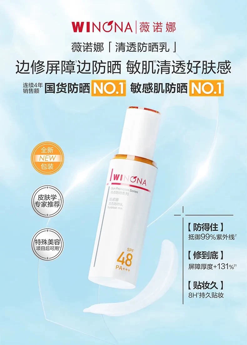 薇诺娜新款清透防晒乳敏感肌面部防晒霜隔离清爽修复50g