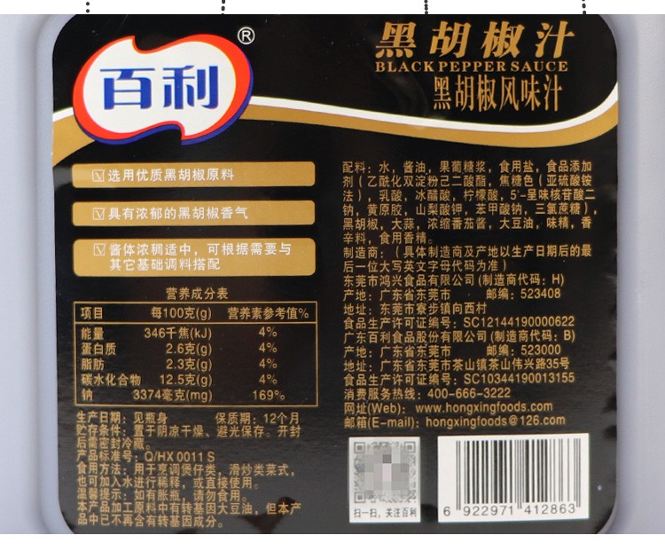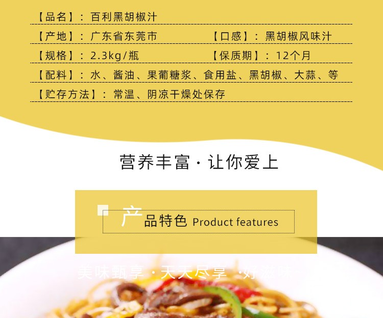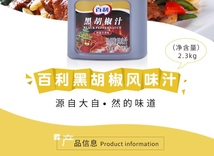 2.3kg 百利黑胡椒风味汁 浓郁辛香味 牛排酱意面拌饭手抓饼等调味