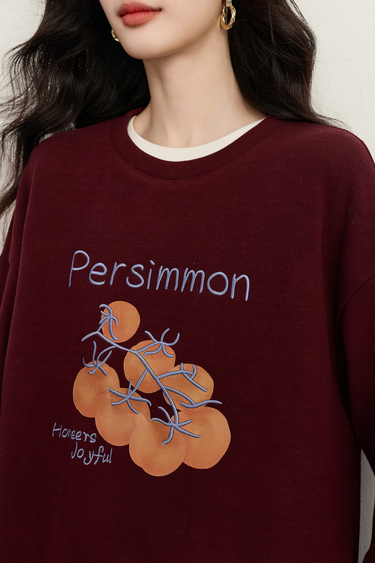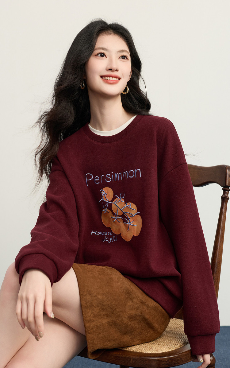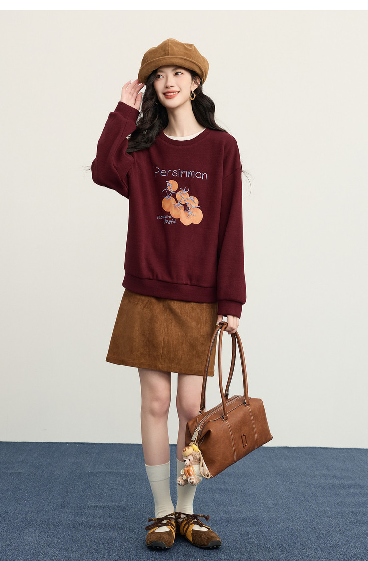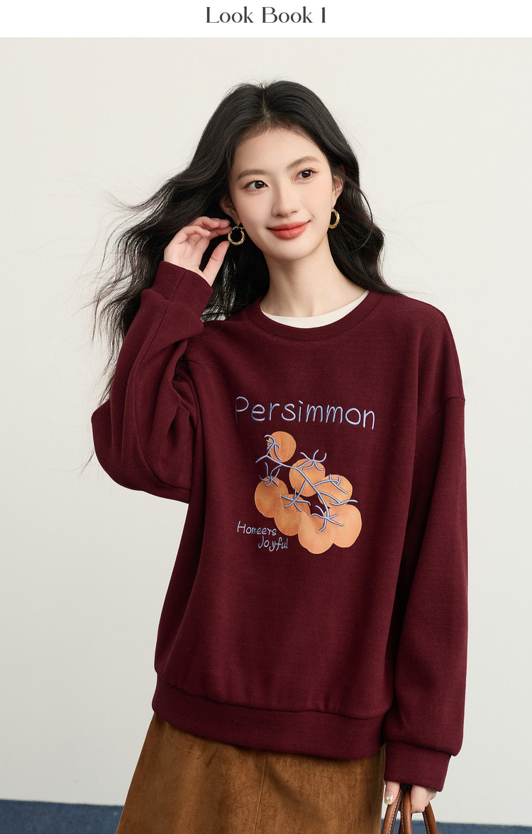 【12/31新品】熙世界【柿柿如意】印花加绒卫衣卫衣女款冬季加厚慵懒风圆领上衣