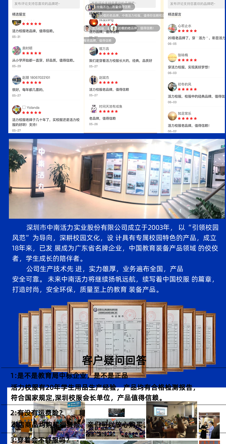 - 活力校服由深圳市中南活力实业股份有限公司创建的品牌,深圳二十一年老品牌,教育局中标企业;主营深圳校服、广州校服、东莞校服、佛山校服、肇庆校服、江苏校服、鞋袜、学生床上用品等学生课桌椅一站式教育领域产品