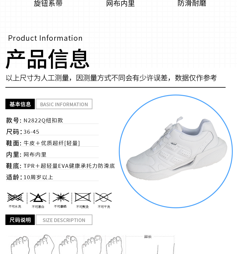 2024深圳翠园初级中学/罗外实验专属校鞋中学生白色旋扣七年级新生运动鞋纳米抗菌