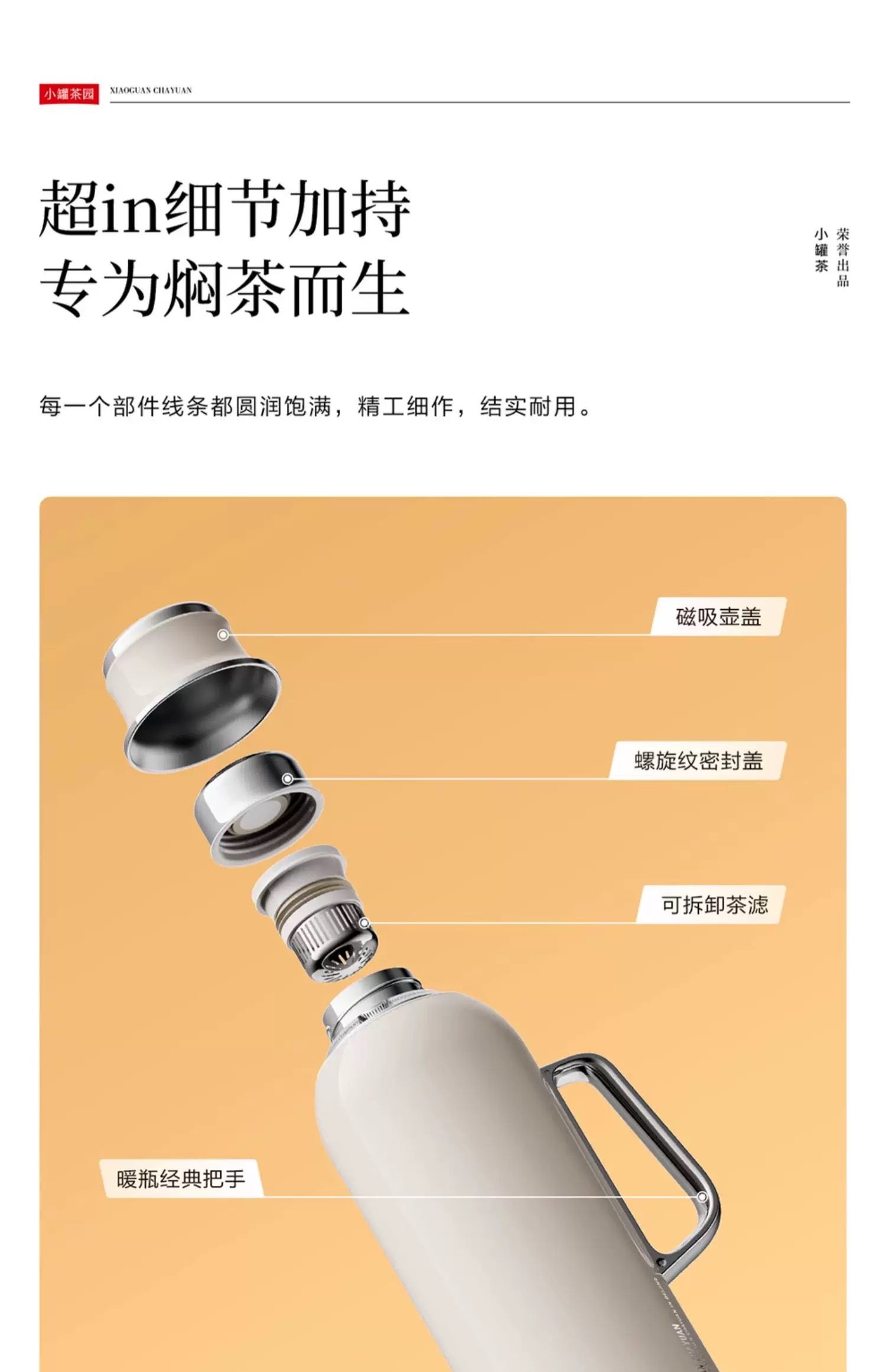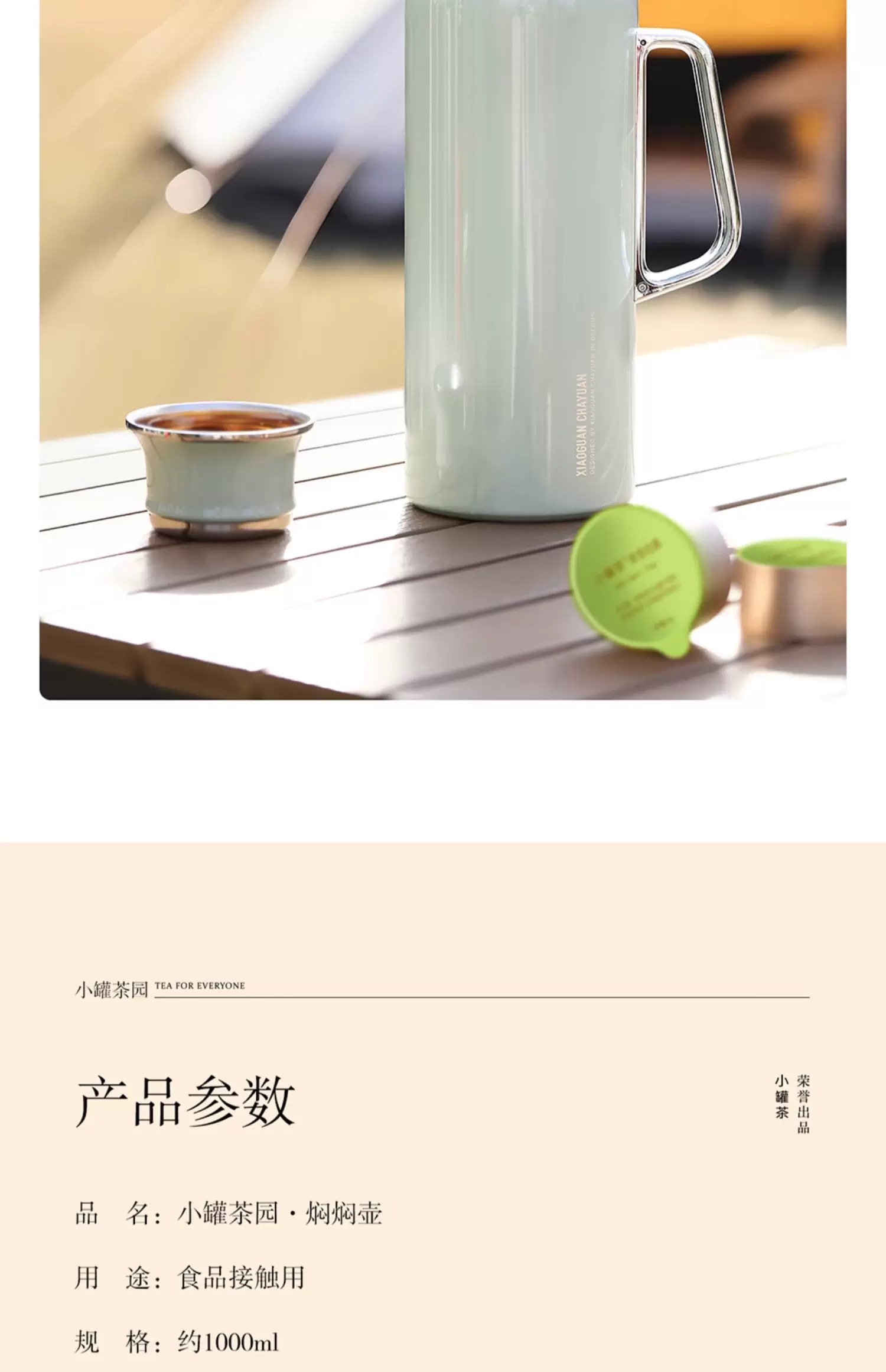 小罐茶园泡茶壶家用焖焖壶德国红点奖泡茶专用保温水壶大容量1L