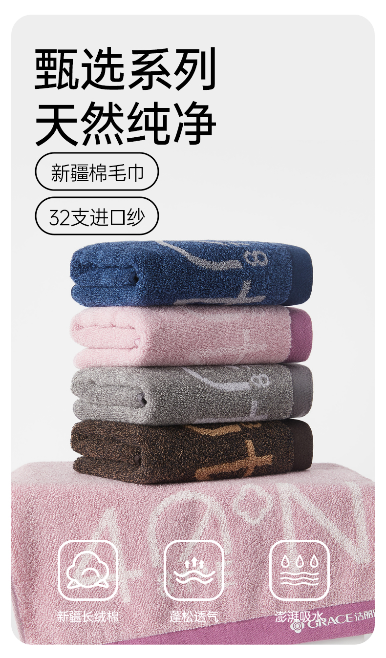 【棉疆溯源】洁丽雅全棉毛巾坐标印象优质新疆棉柔软亲肤洗脸家用