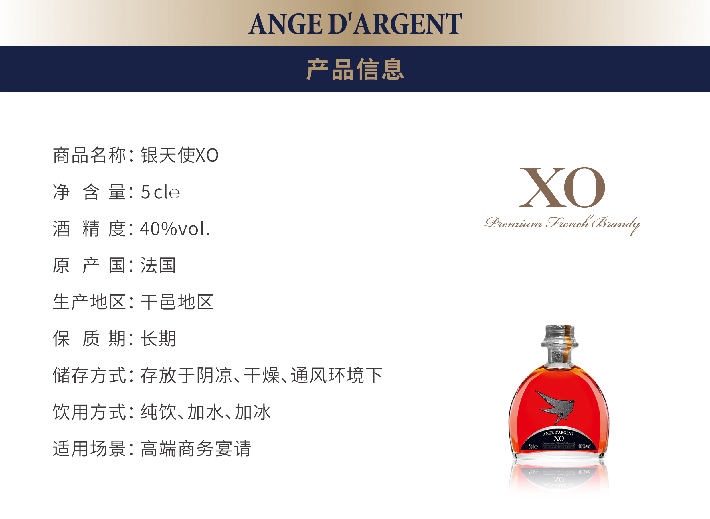 【有税版】银天使XO 白兰地 700ml【赠送:银天使VSOP 200ml*1瓶、定制礼袋*1个】