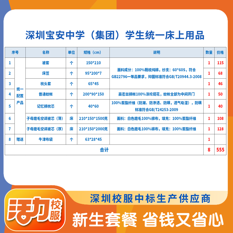 深圳宝安中学(集团)学生统一床上用品