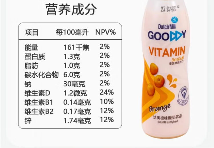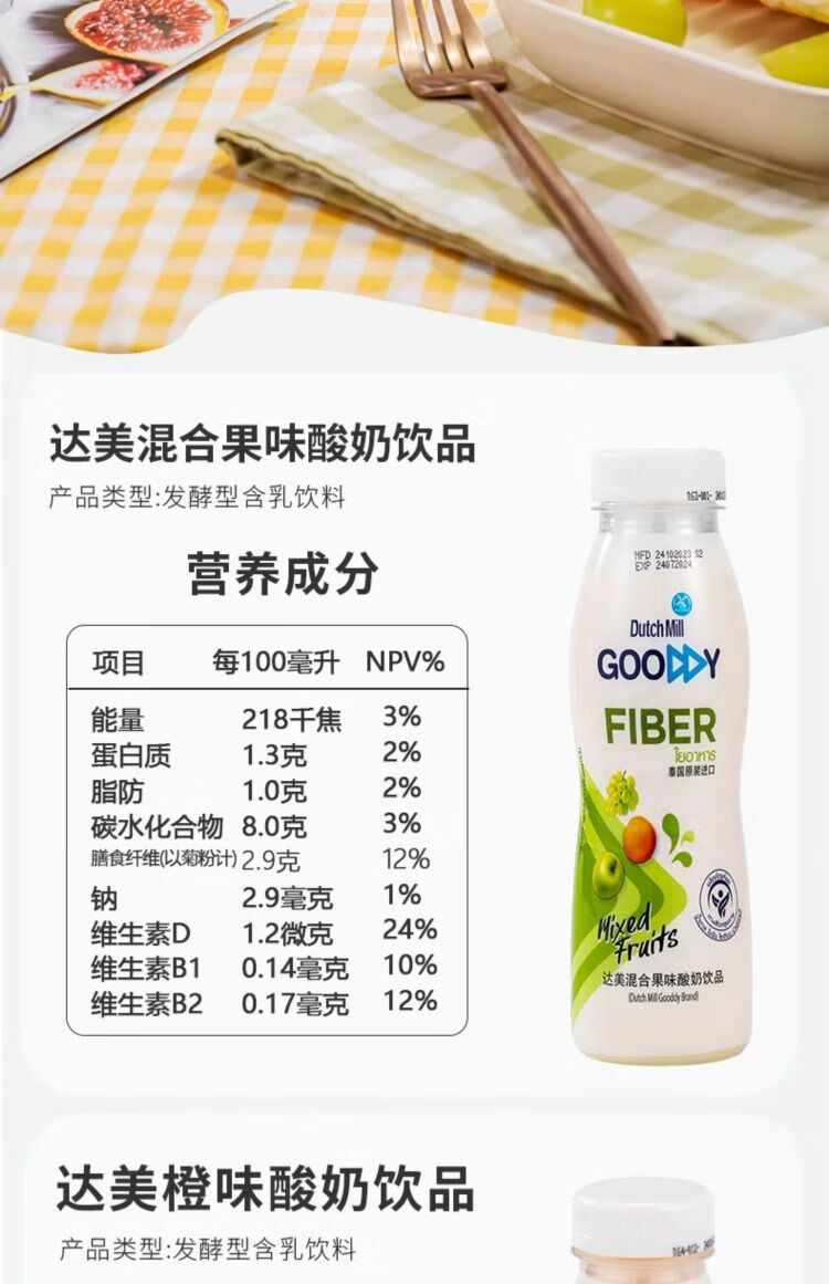 达美酸奶饮品系列 橙味 混合果汁 300ml