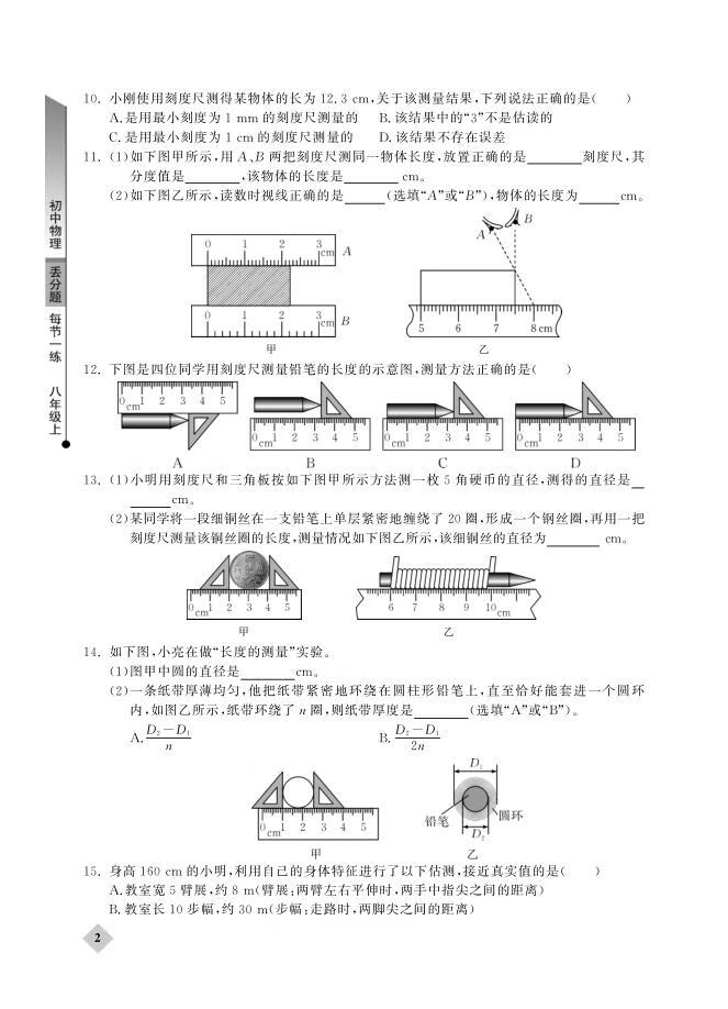 (仓发) 初中物理丢分题每节一练(八年级上)/湖北教育出版社/9787556425983