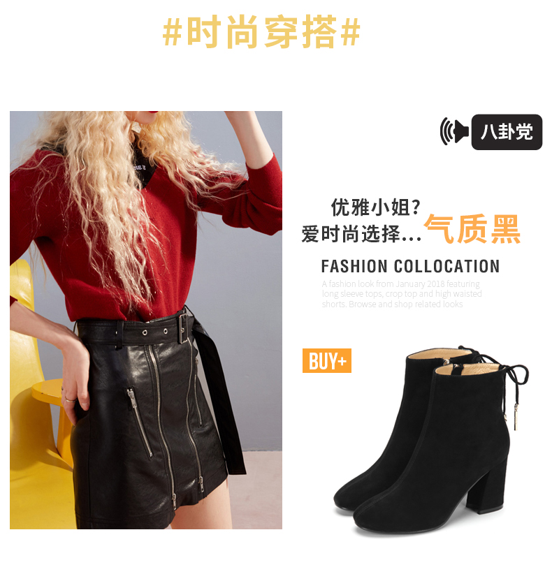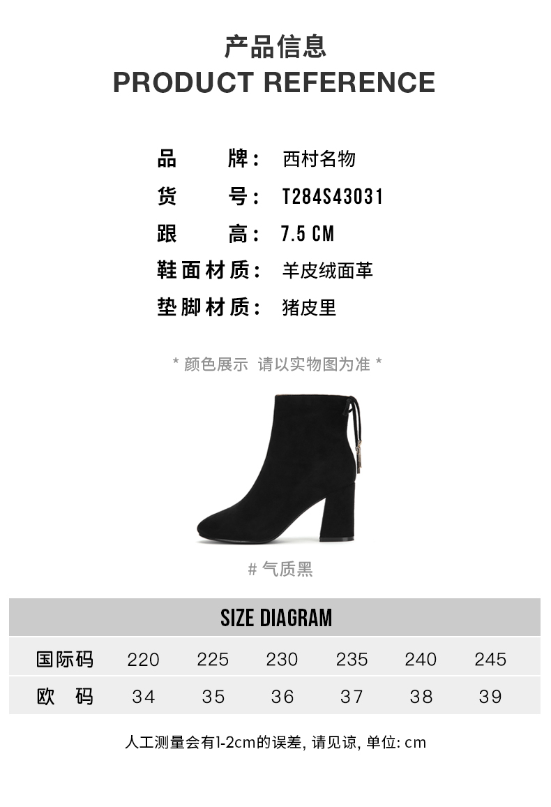 西村名物时装短靴女保暖毛毛中跟复古粗跟尖头2020春夏新款T284S43031