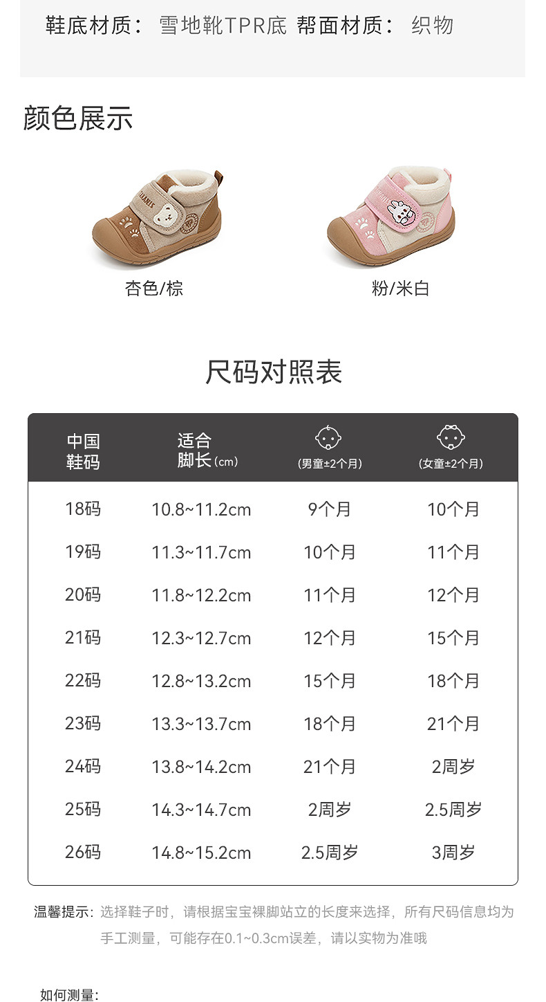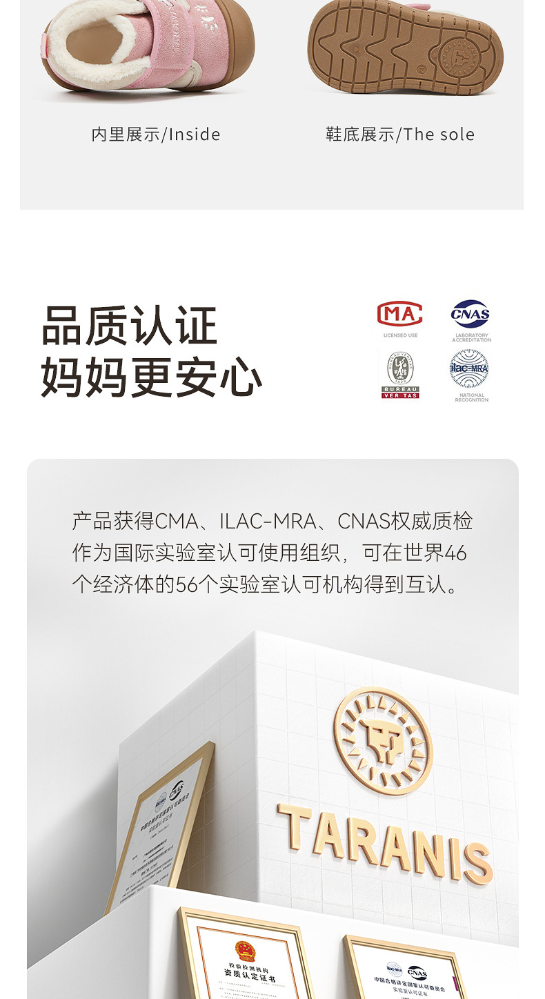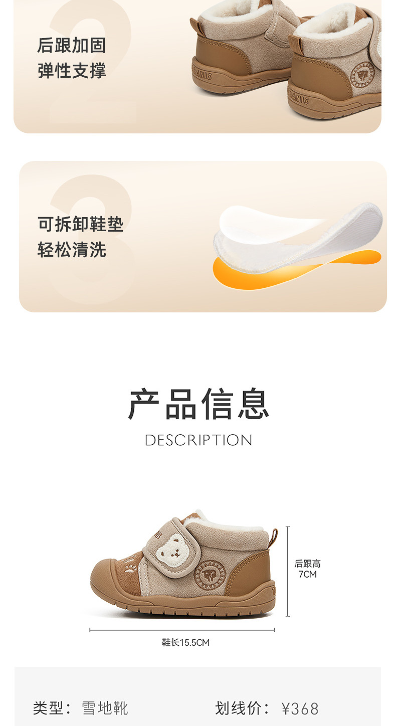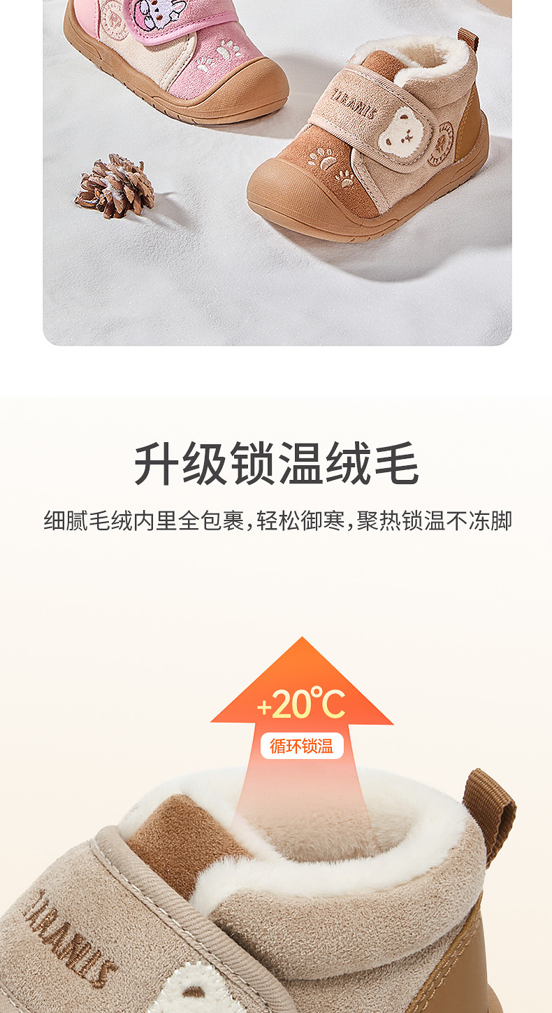泰兰尼斯童鞋冬季新款学步鞋加绒保暖宝宝防滑雪地靴子机能鞋棉鞋T08T5D6460