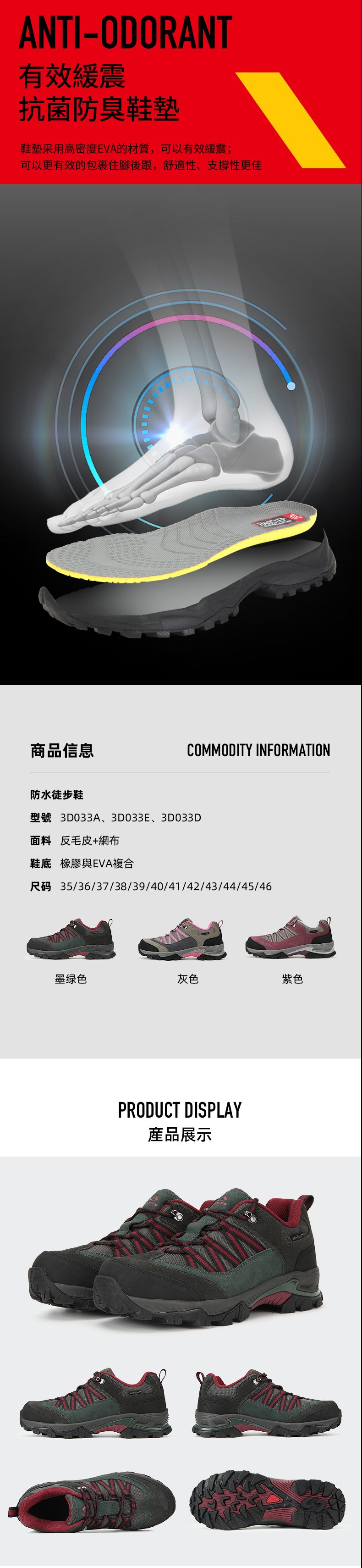【199秒杀!】洛弛红低帮反绒皮轻量化防水徒步鞋3D033