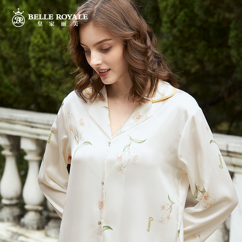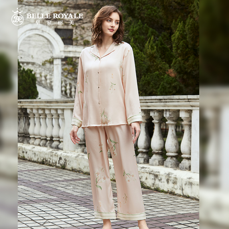 皇家丽美女款珠光缎面睡衣长袖春夏冰丝薄款H版外穿家居服套装JJT9947