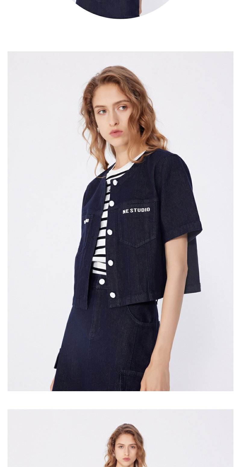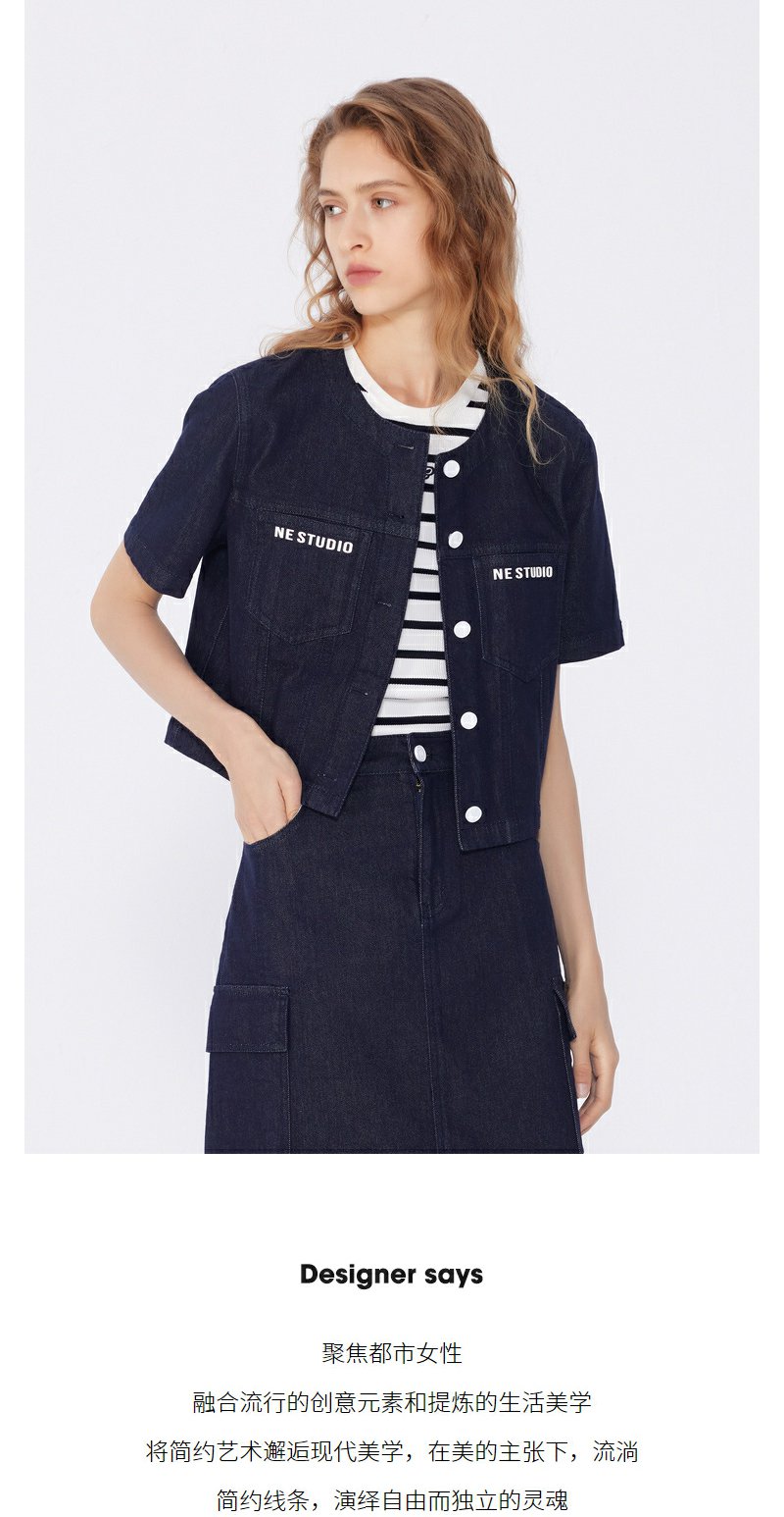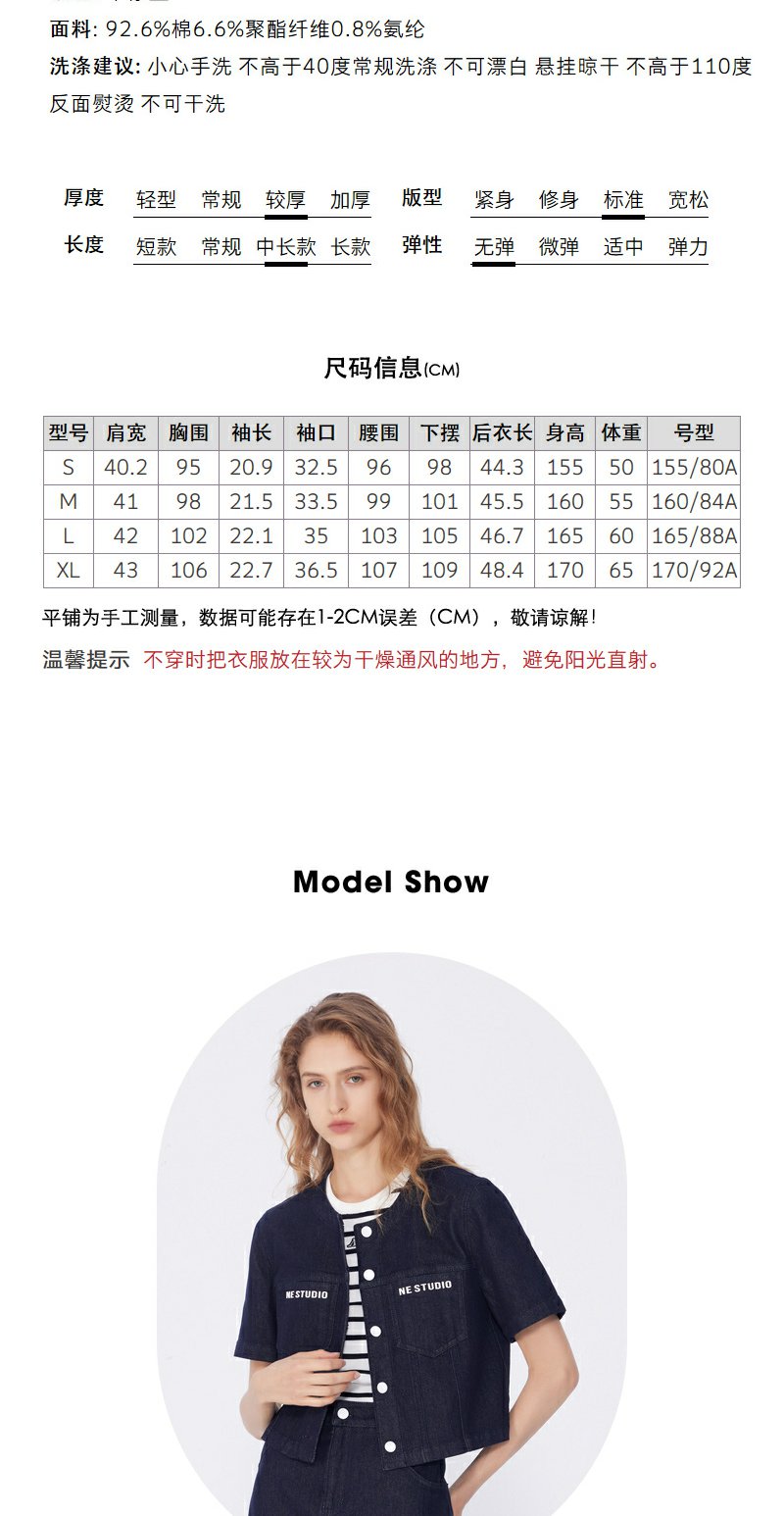 NEELLY纳俪商场同款春季新款圆领修身短款外套女小个子通勤上衣N25034C04608