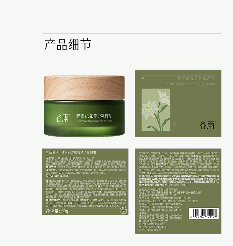 【会员随心选】谷雨「雪绒修护霜」积雪绒花修护凝润霜50g#专区部分退款不发货#