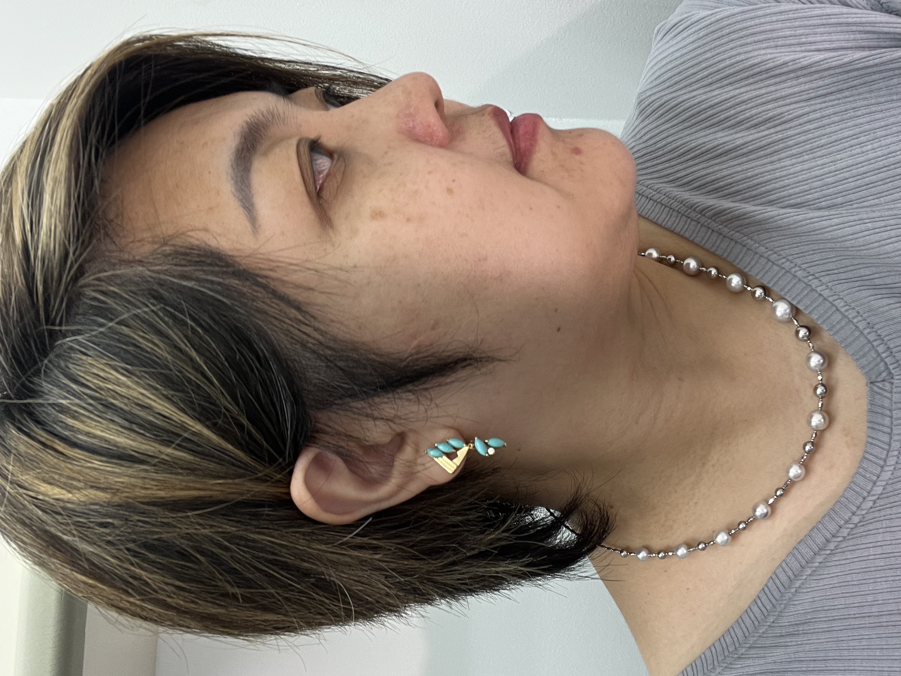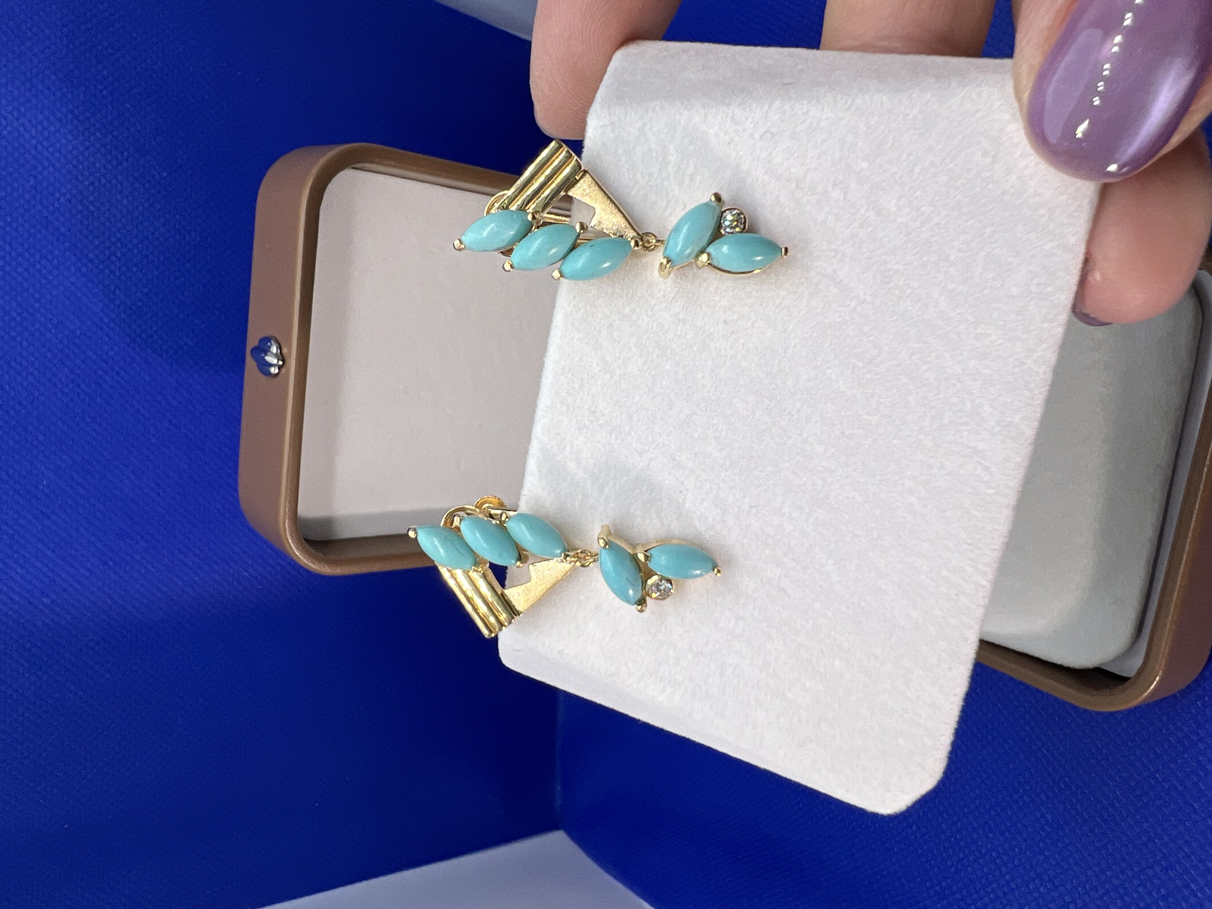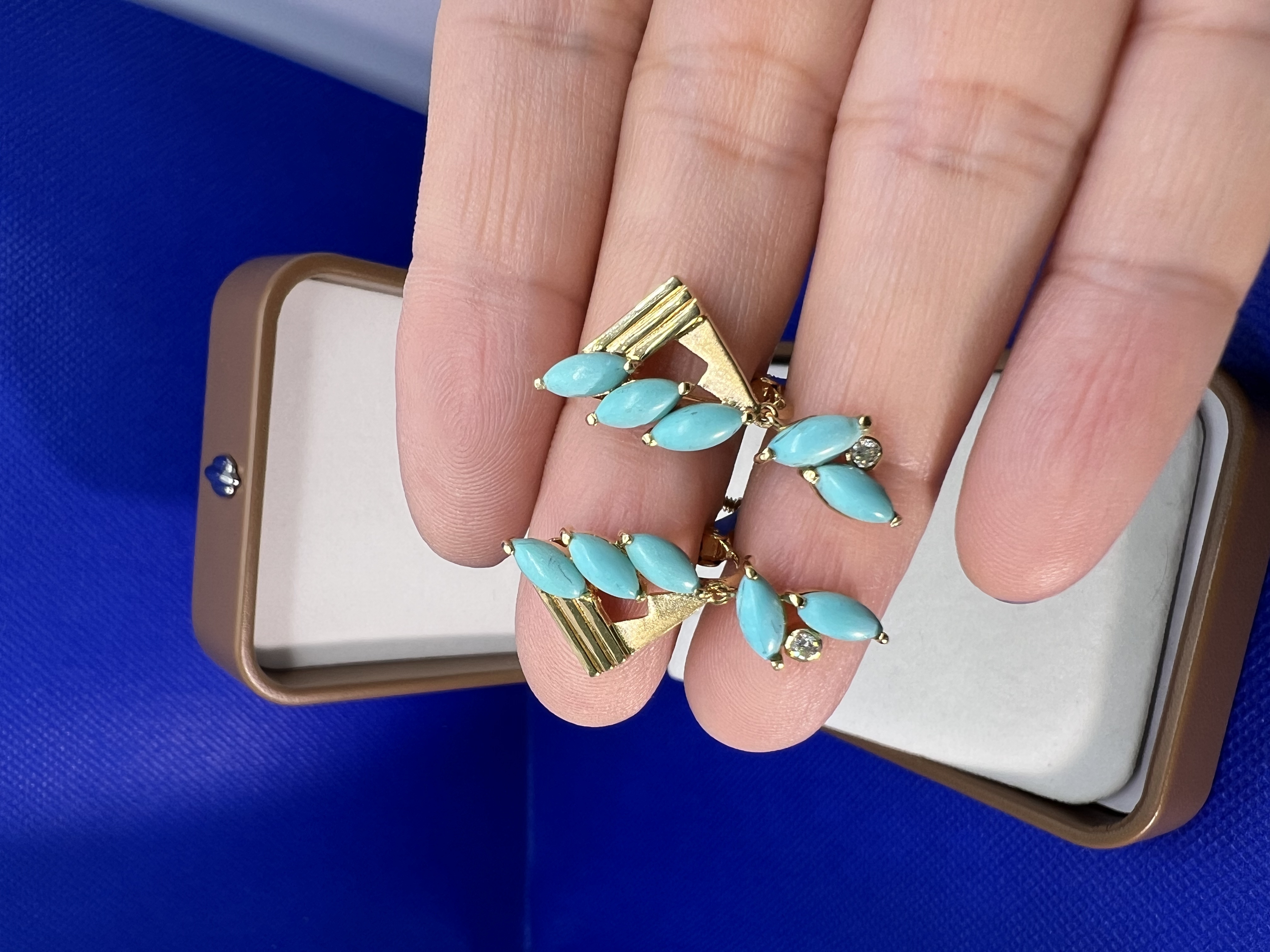 【日本溯源之旅】18k金松石耳夹 设计师特款 原矿美松自然质朴 独特橄榄形群镶设计款 耳坠长度灵动轻盈 弹力双夹 8g(展会产品拍下后不支持7天无理由退换货)