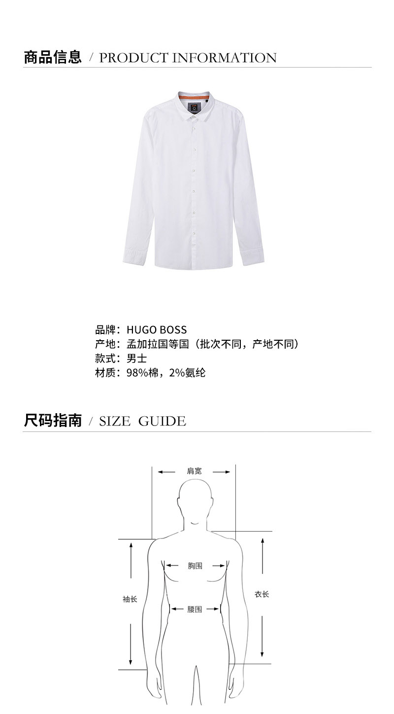 HUGO BOSS/雨果博斯【22春夏新款】男士棉质长袖衬衫 50467251