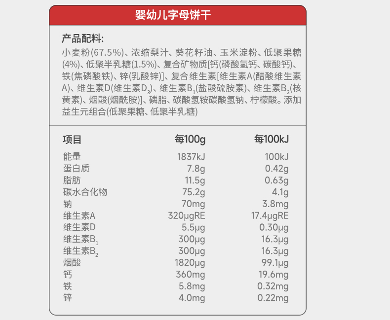 【伊威—婴标饼干】婴幼儿宝宝6月饼干磨牙棒零食不添加白砂糖80g