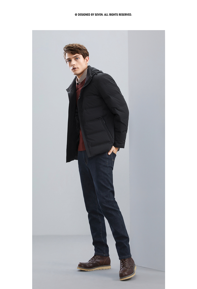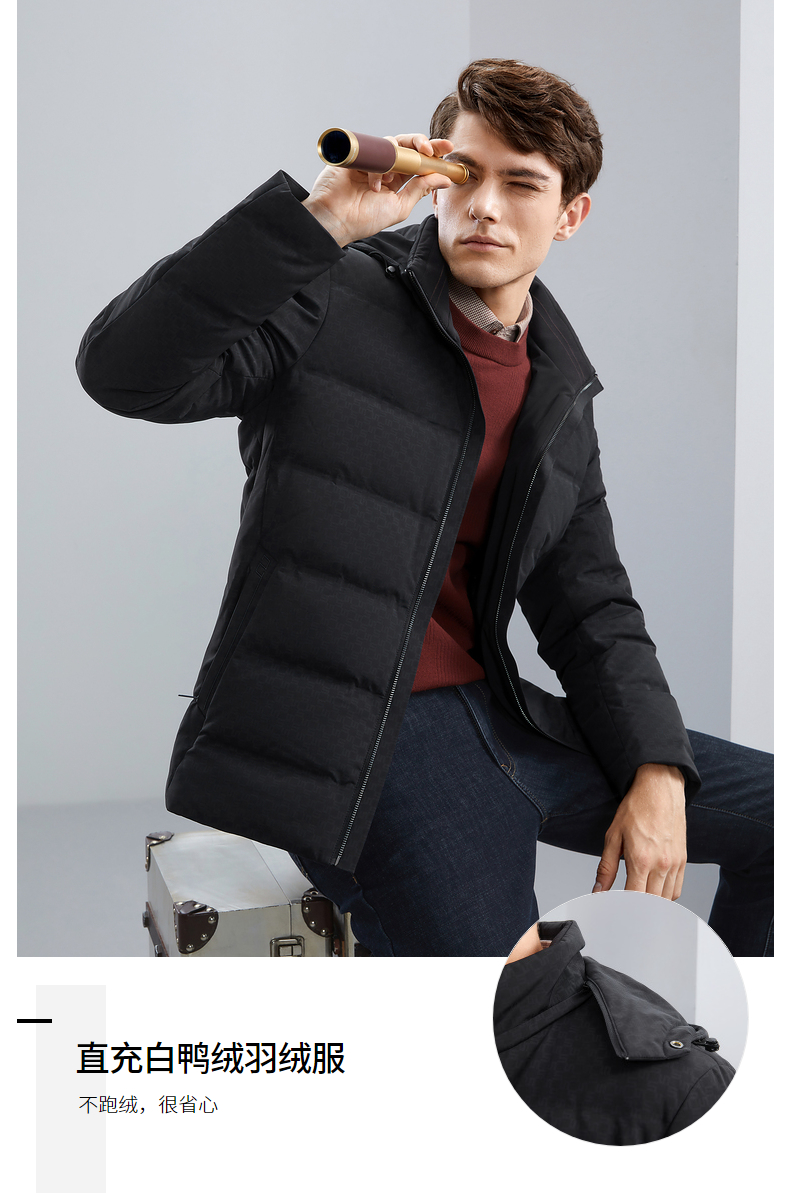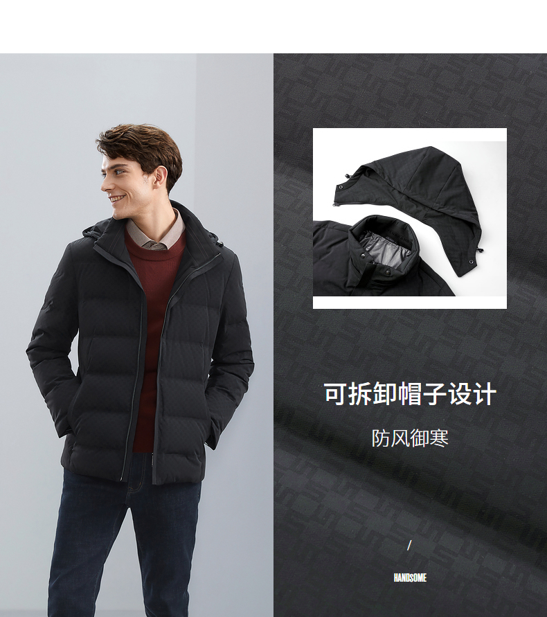 【可拆卸帽】柒牌羽绒服男冬季时尚休闲字母印花白鸭绒保暖厚外套 125E70200