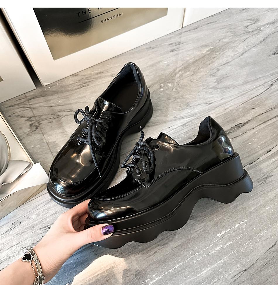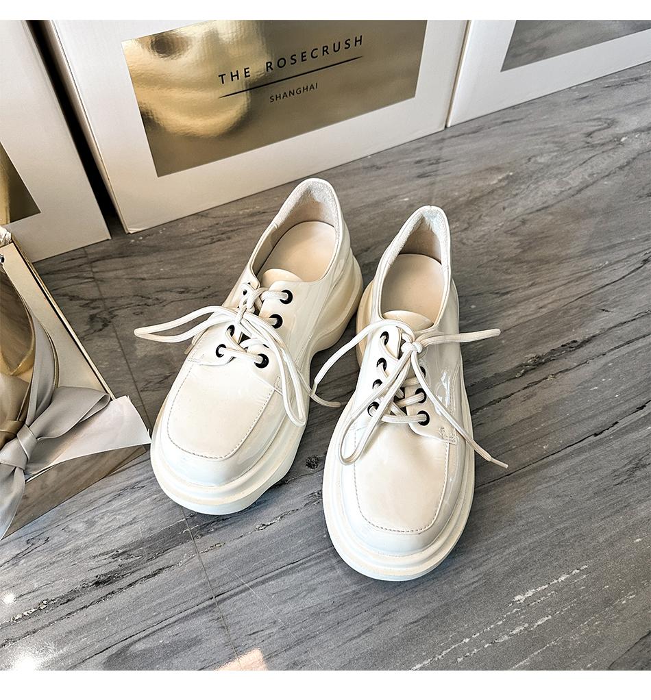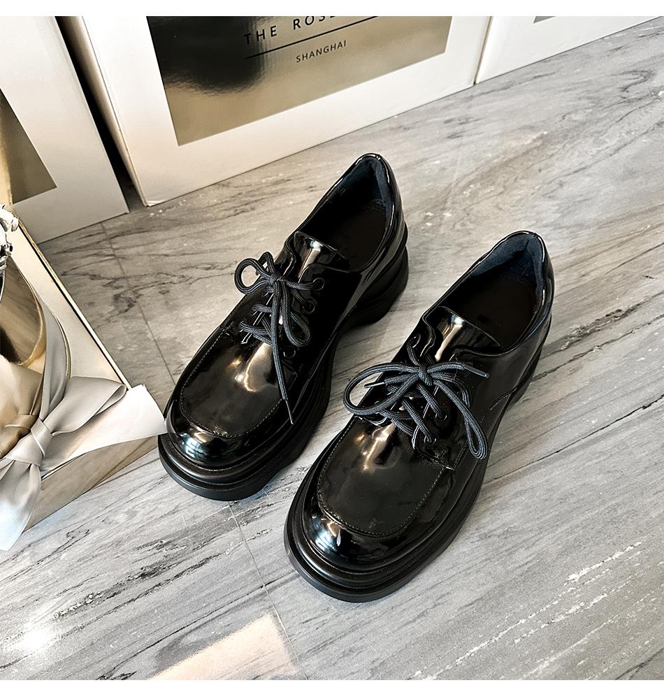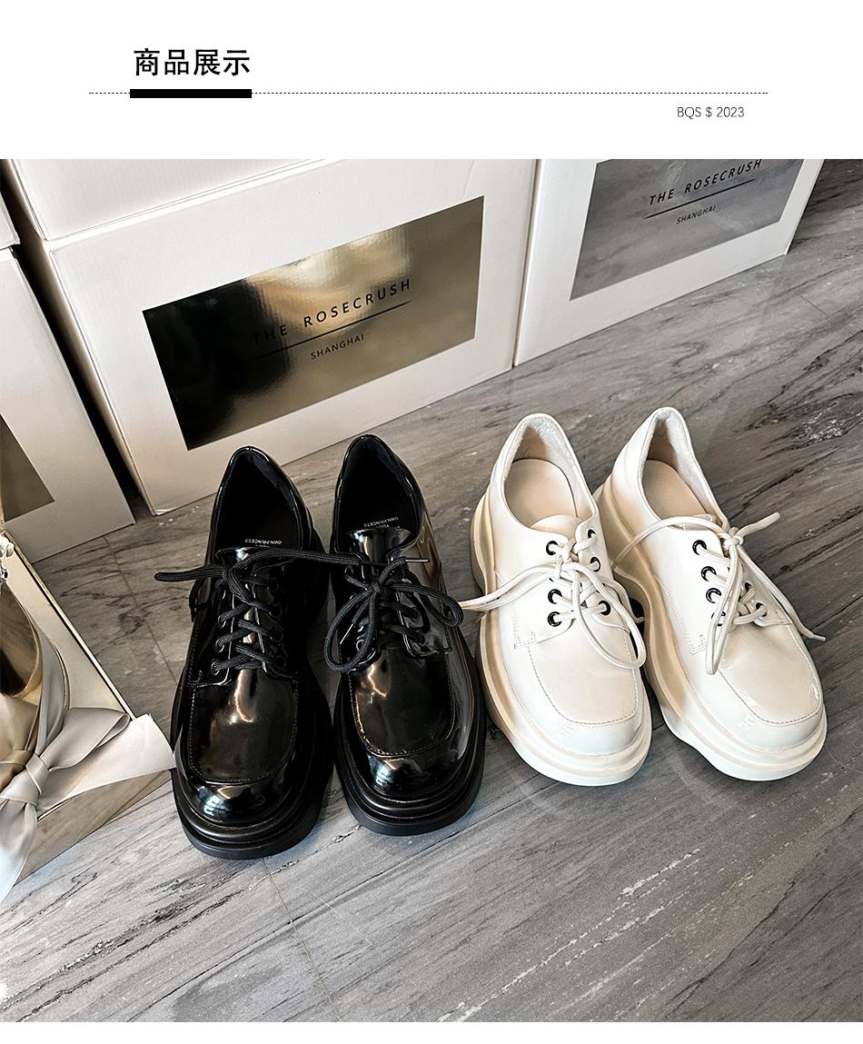 【大货,不退不换】 法式百搭牛漆皮乐福鞋英伦风5.5cm厚底小皮鞋 BeqQueenStory鞋子