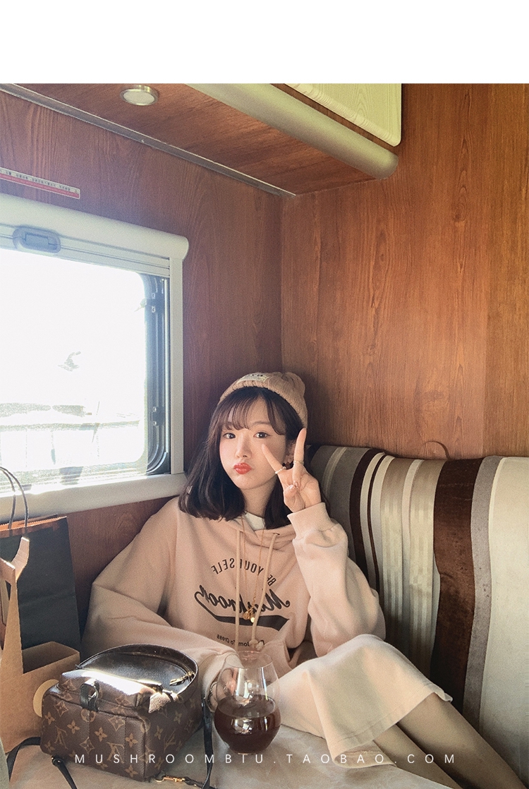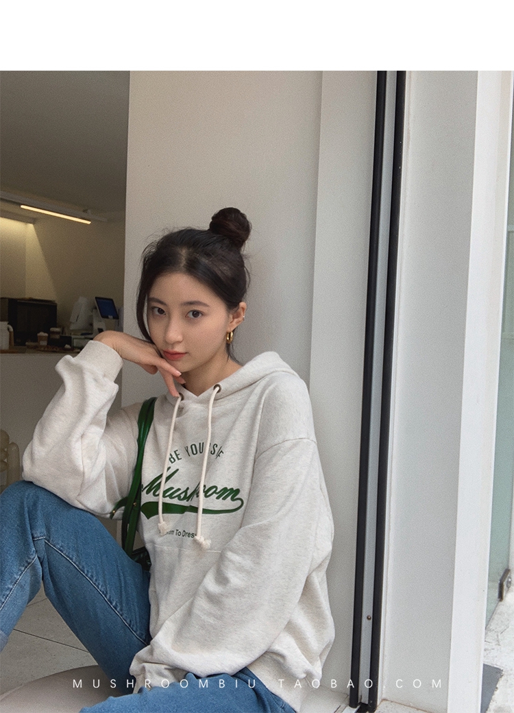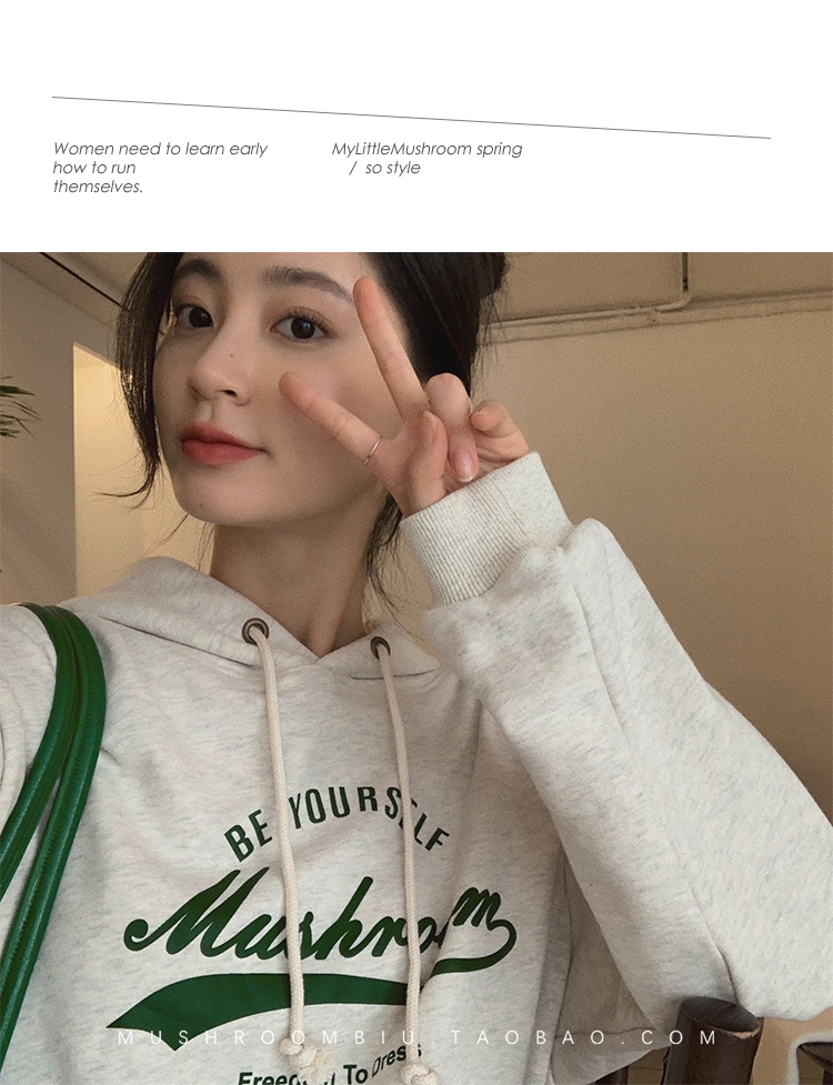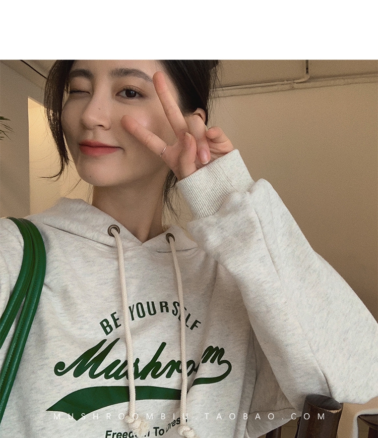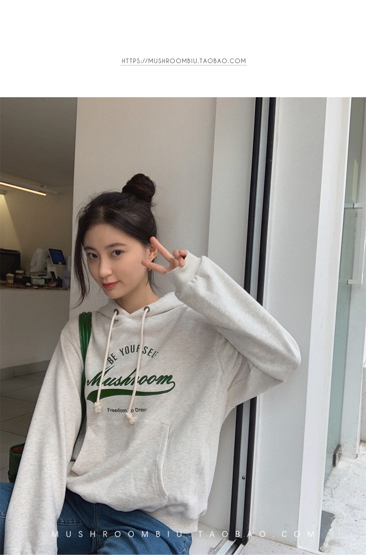 金蘑菇菇【 假日甜心 自制周末卫衣】多版本字母印花连帽减龄卫衣