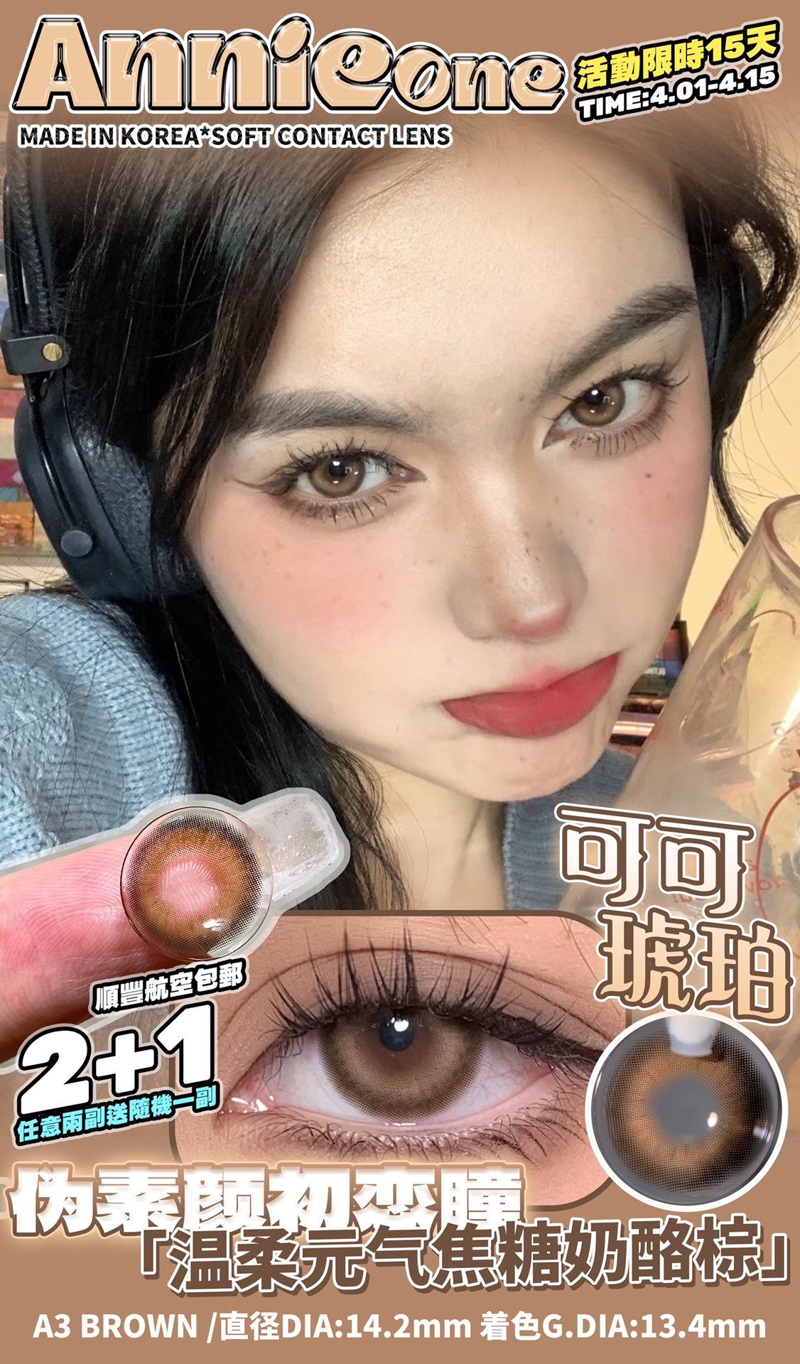 焦糖格巫 直径14.2mm 染色直径13.6mm 基弧8.6