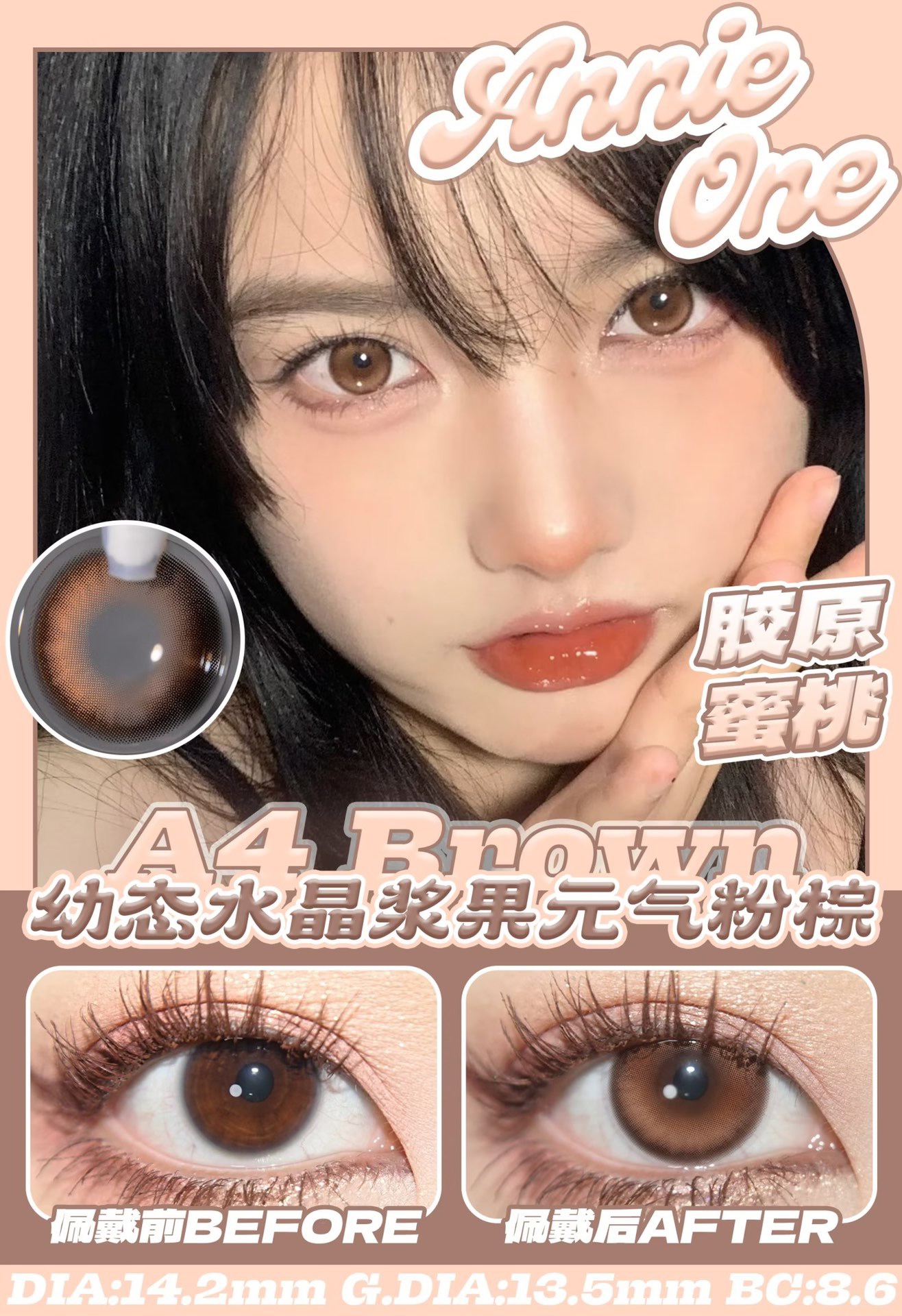 胶原蜜桃 直径14.2mm 染色直径13.5mm 基弧8.6