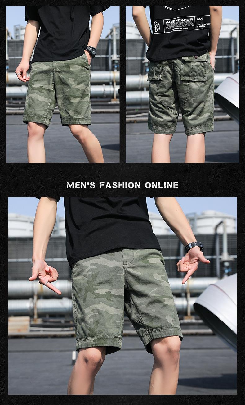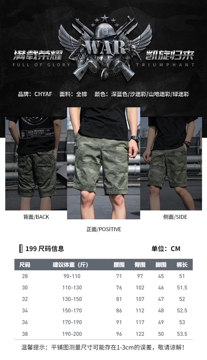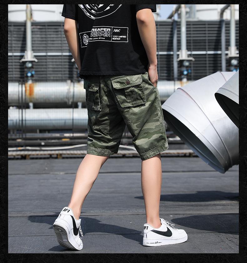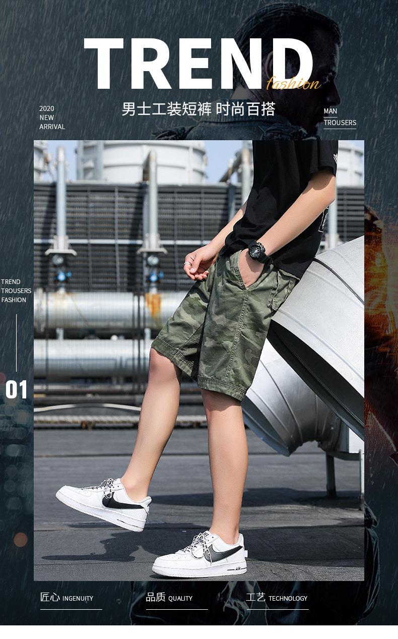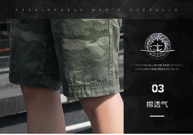 新款夏季男士迷彩五分工装裤复古男士直筒中腰棉休闲短裤