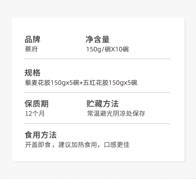 【即食花胶】 蔡府每日花胶(五红150g*5碗+藜麦150g*5碗)多口味可选