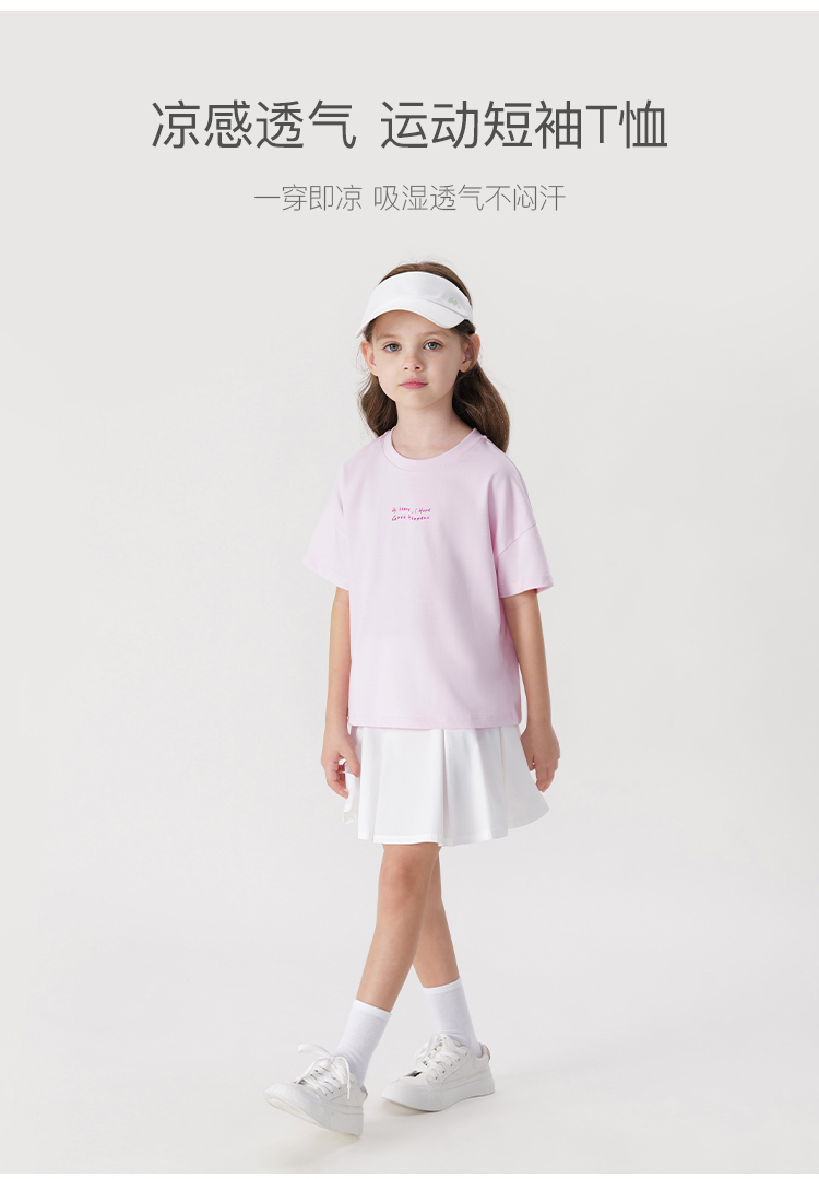 [凉感透气]马克珍妮女童宽松运动字母短袖T恤上衣夏装新款240771