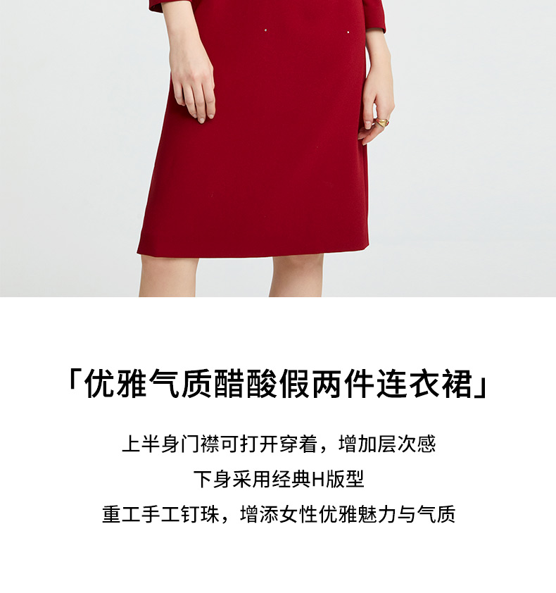 皮尔卡丹女装时尚假两件修身礼服连衣裙P4303E4997T0