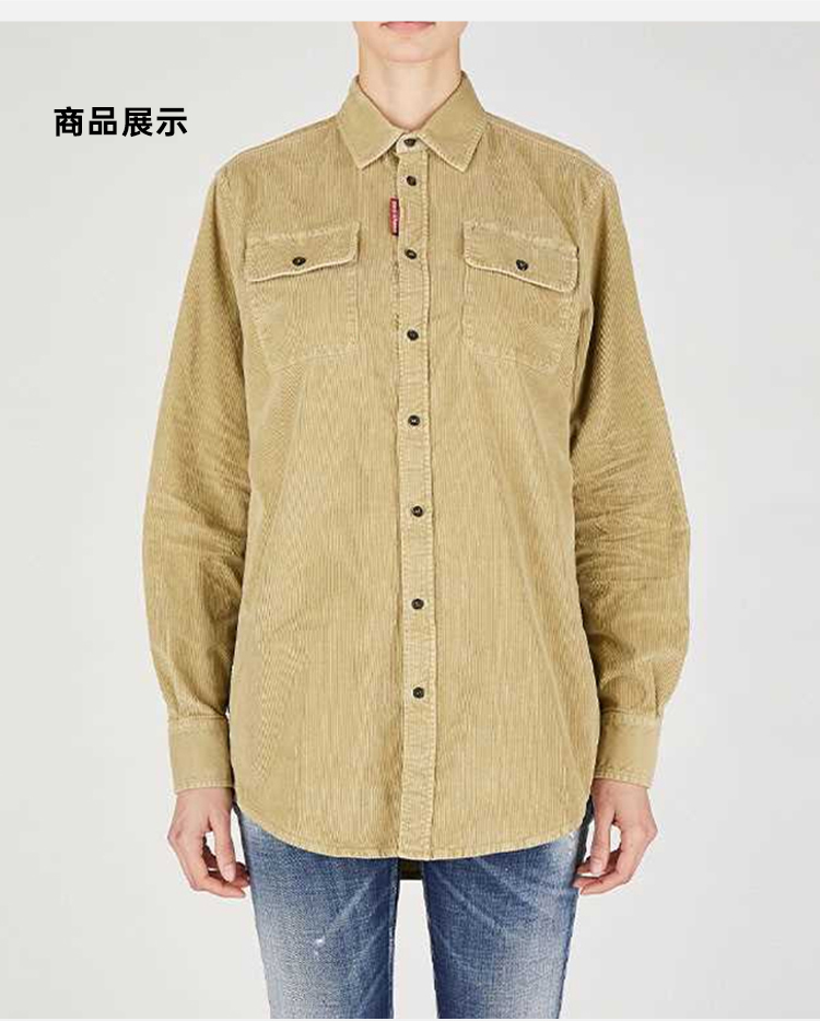 DSQUARED2 女士徽标贴花灯芯绒长袖衬衫 卡其色 S75DL0683 S54097 111