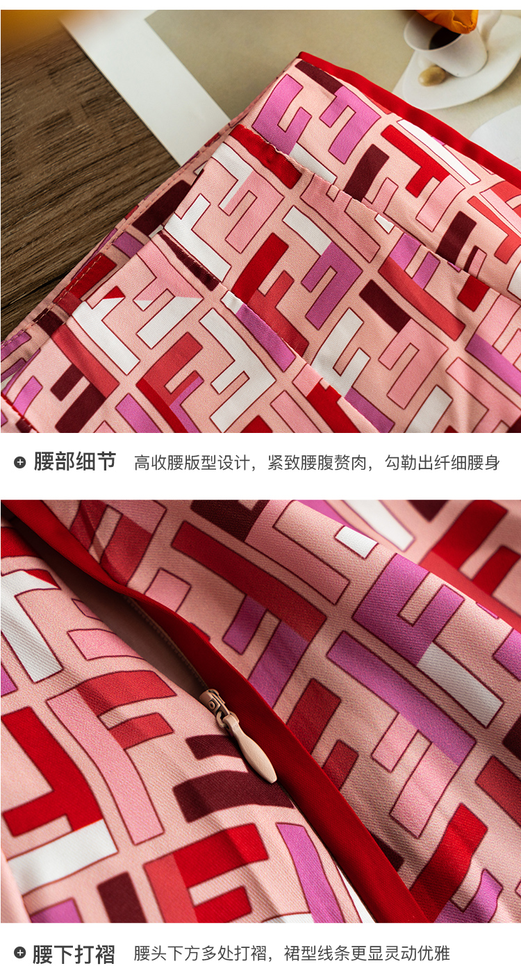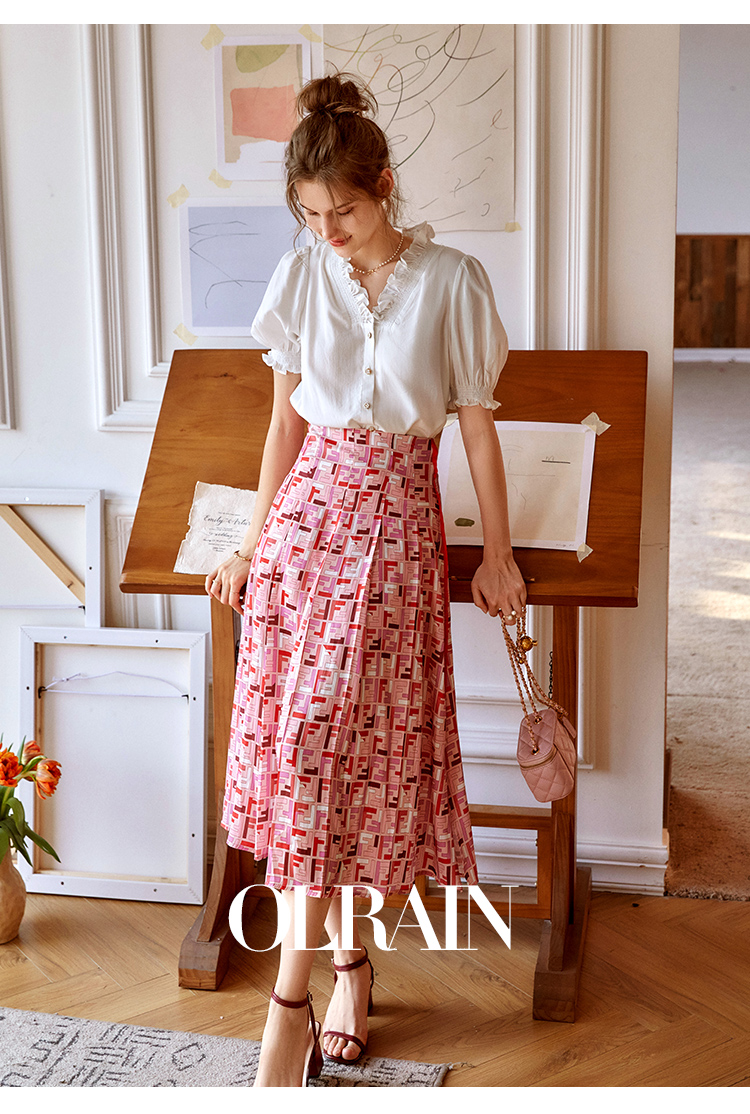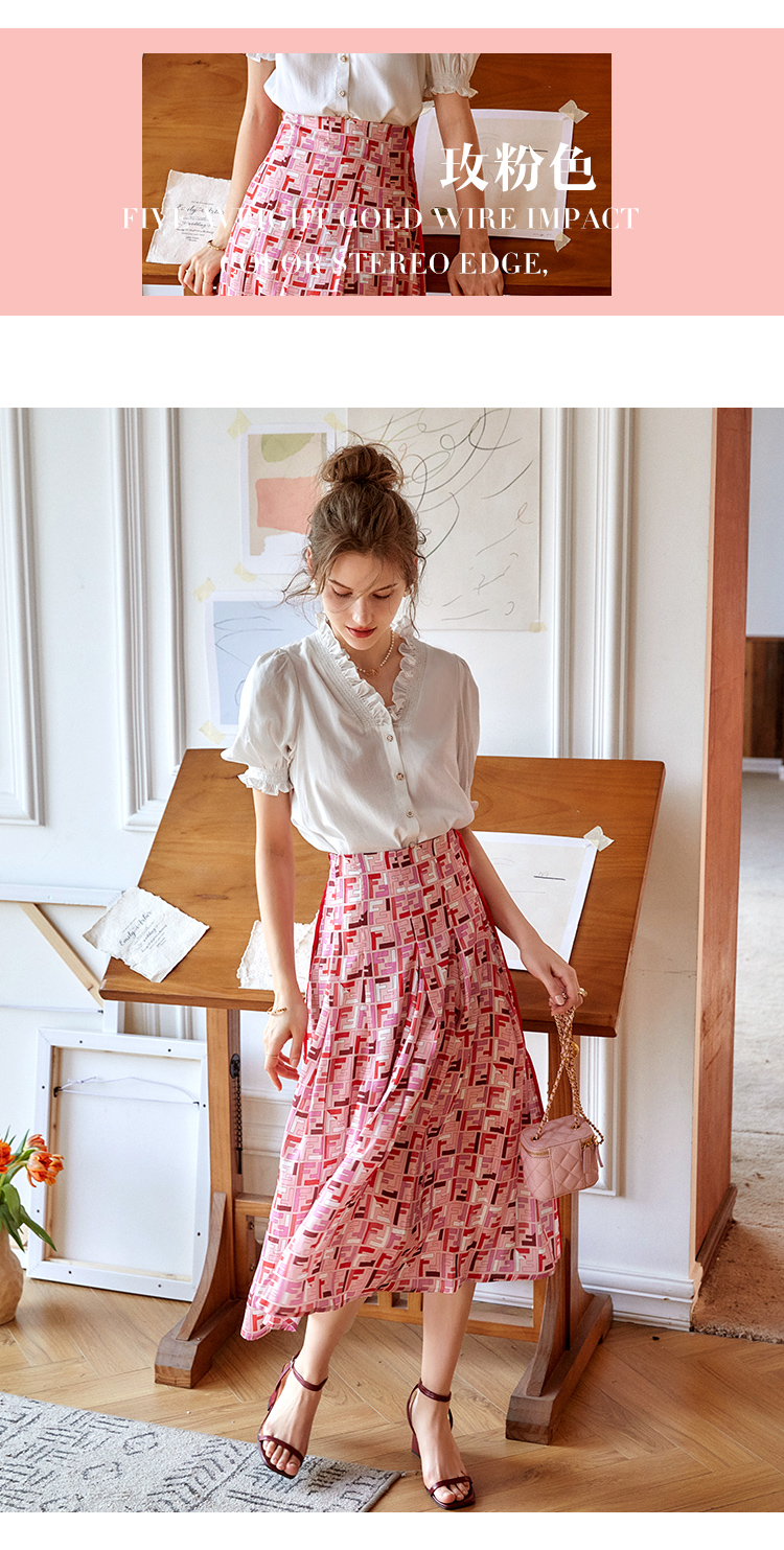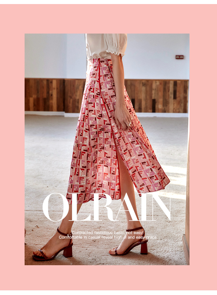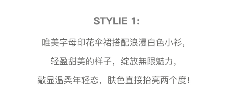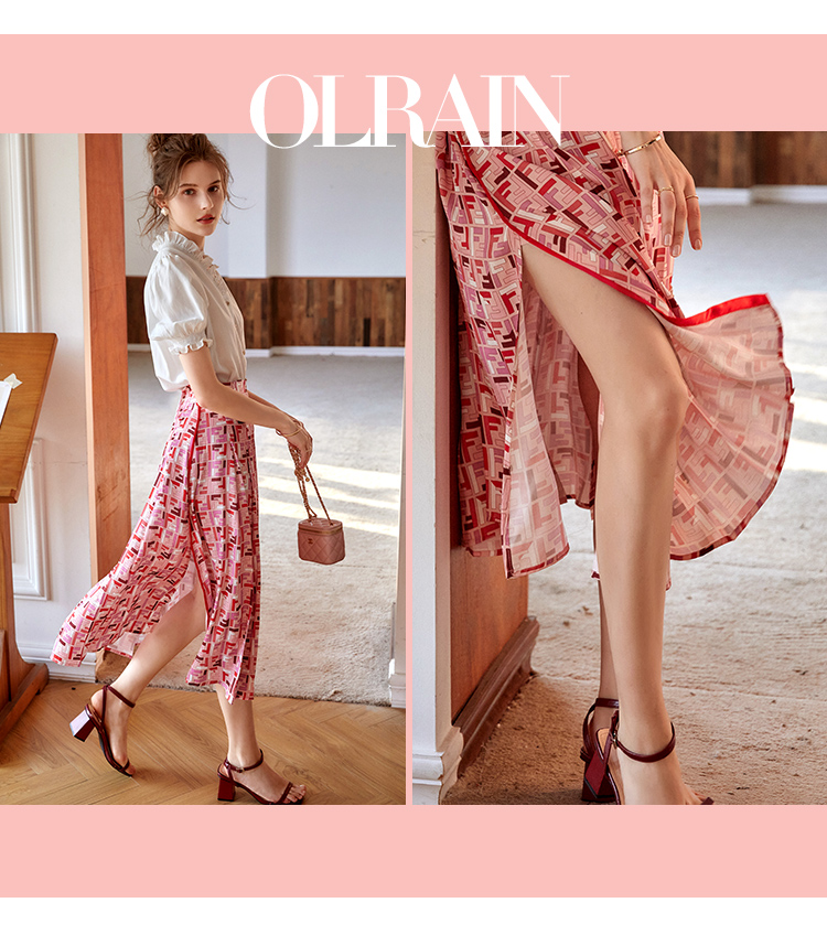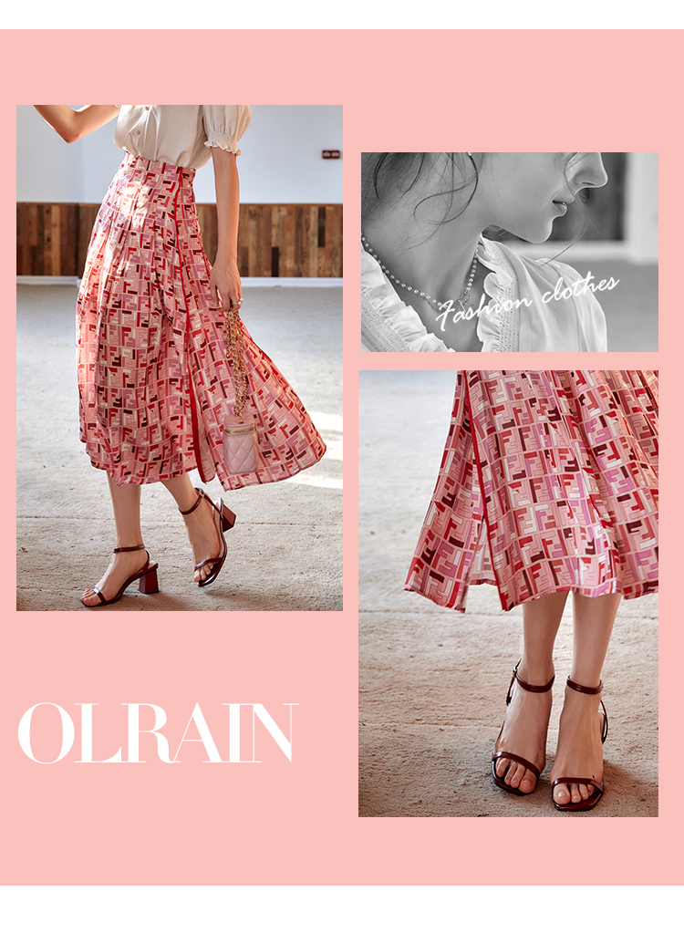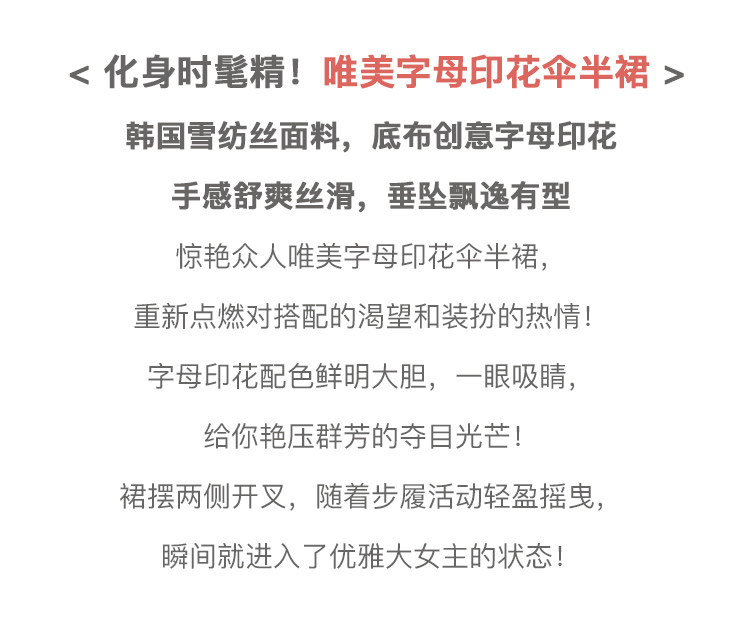 欧芮儿雪纺半身裙2021新款高腰显瘦创意字母印花时髦优雅伞裙