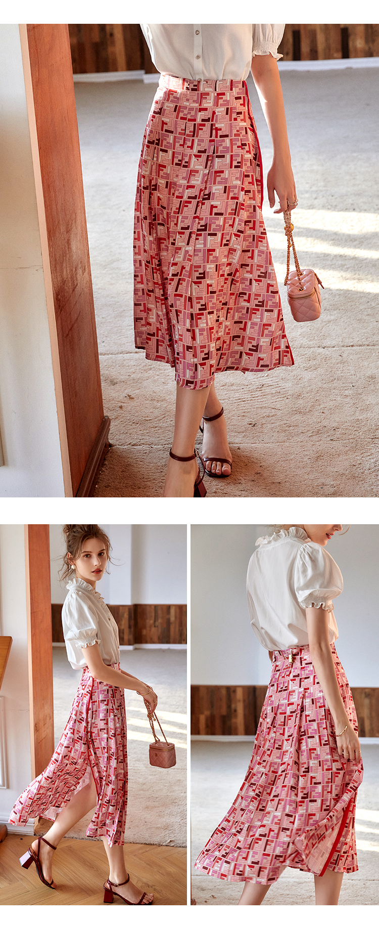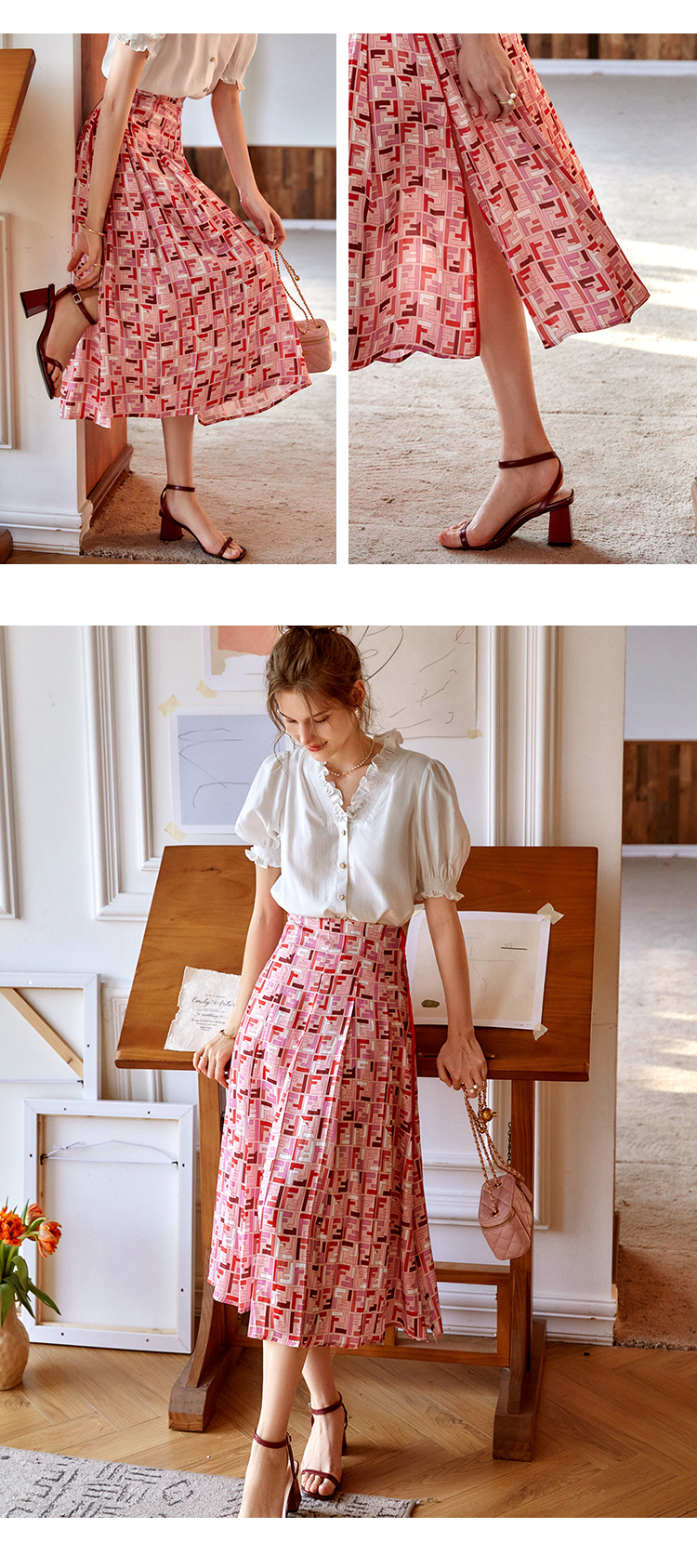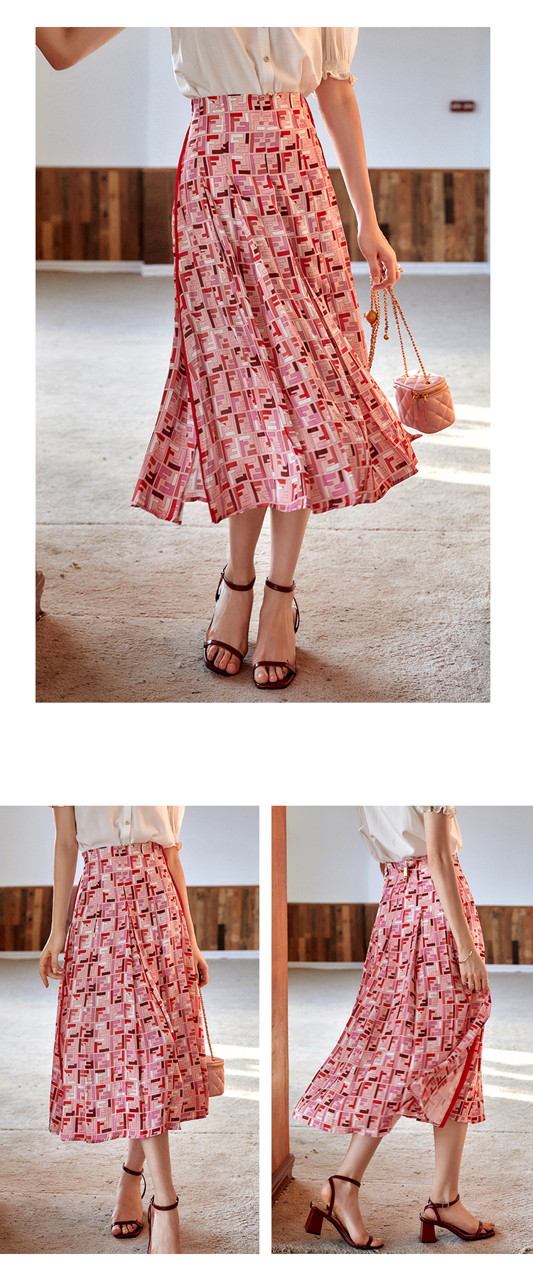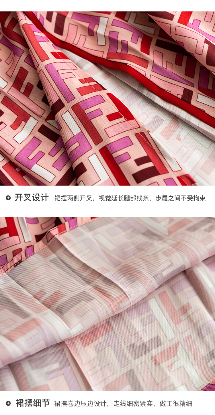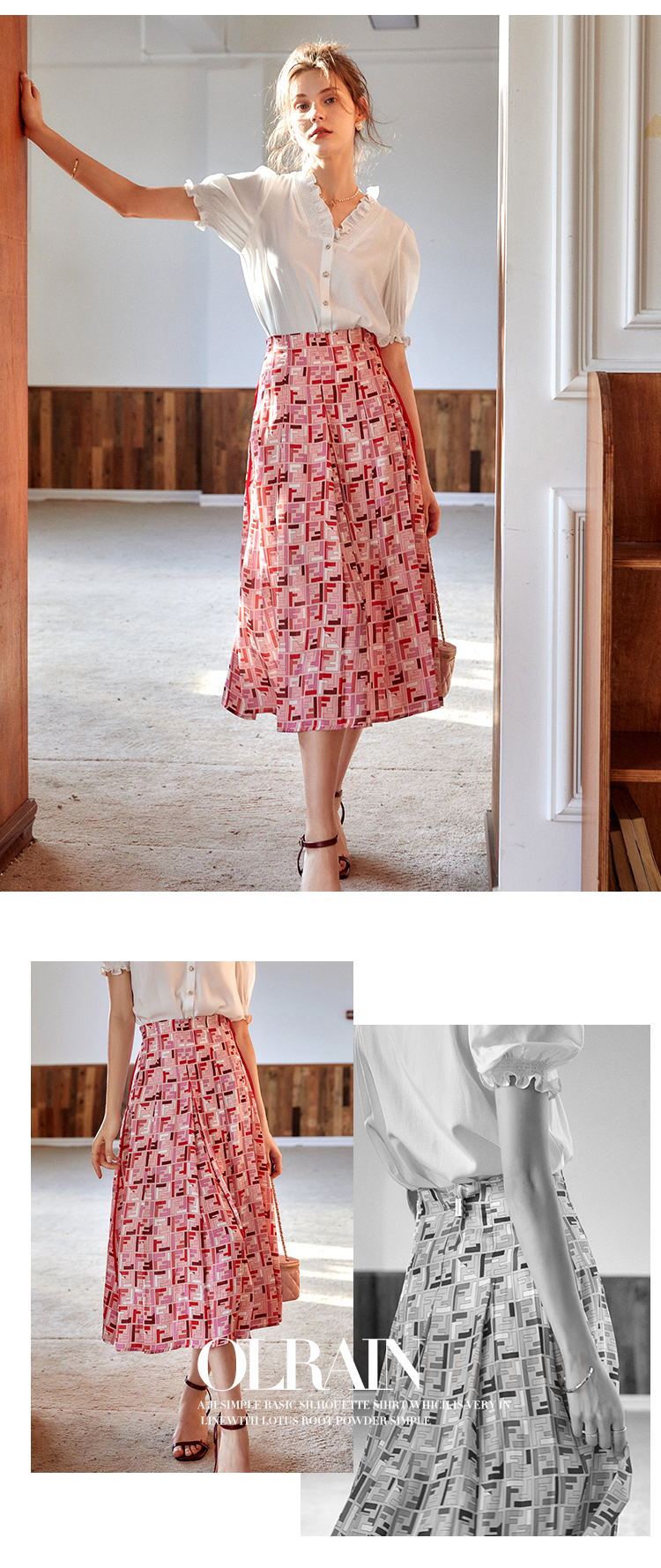 欧芮儿雪纺半身裙2021新款高腰显瘦创意字母印花时髦优雅伞裙