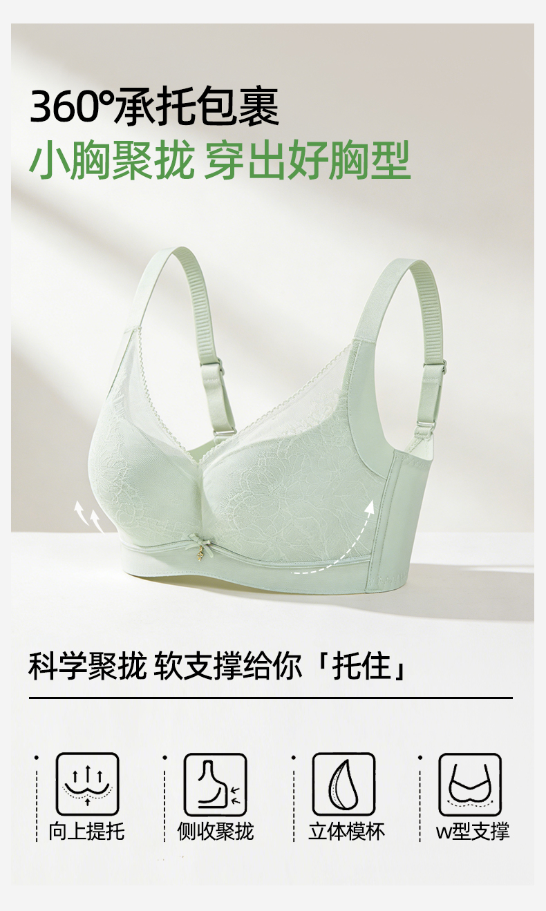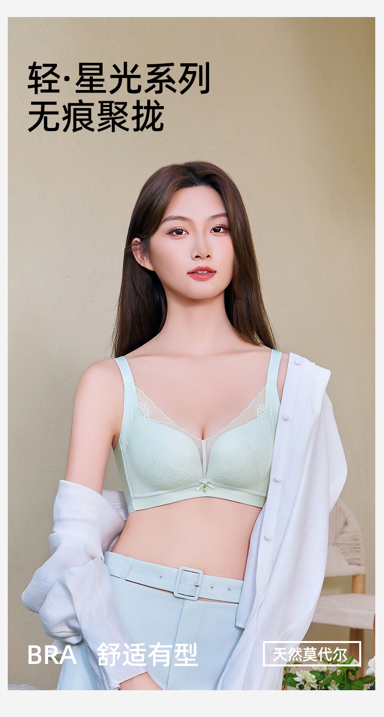 【商场同款轻·星光】熳洁儿 小胸聚拢中厚云感棉杯双层蕾丝法式无钢圈26201508
