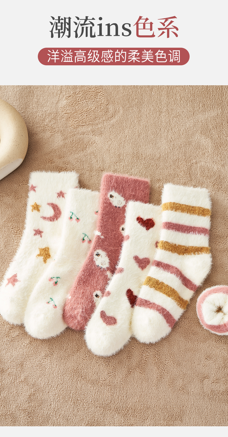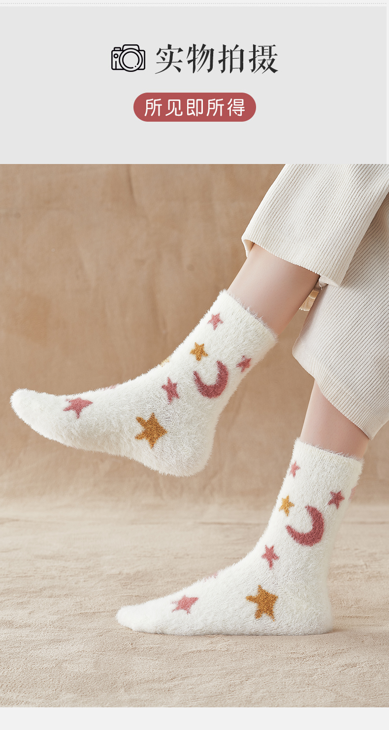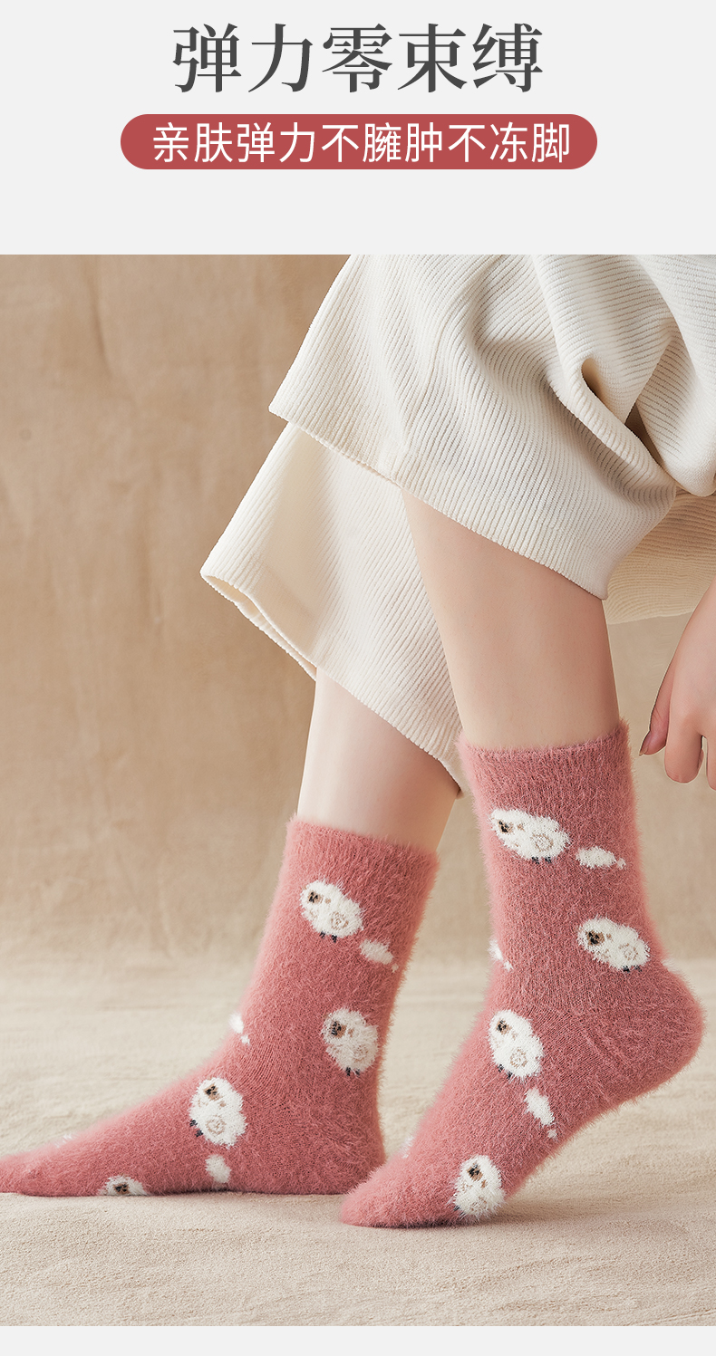 【异业合作】水貂绒袜子女中筒袜冬季厚袜子毛茸茸月子袜加绒加厚珊瑚绒睡眠袜nhk06