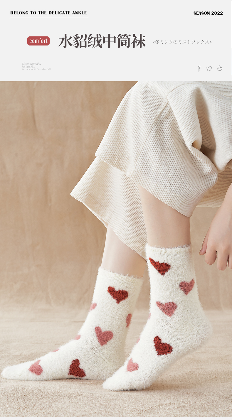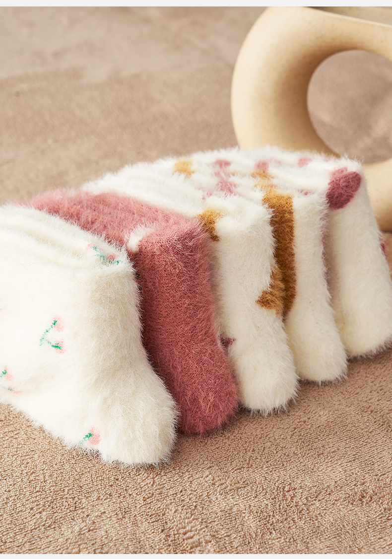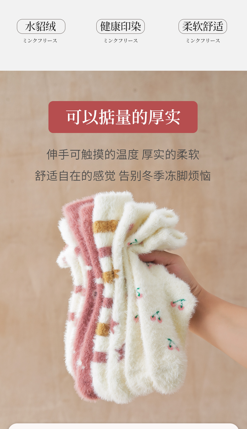 【异业合作】水貂绒袜子女中筒袜冬季厚袜子毛茸茸月子袜加绒加厚珊瑚绒睡眠袜nhk06
