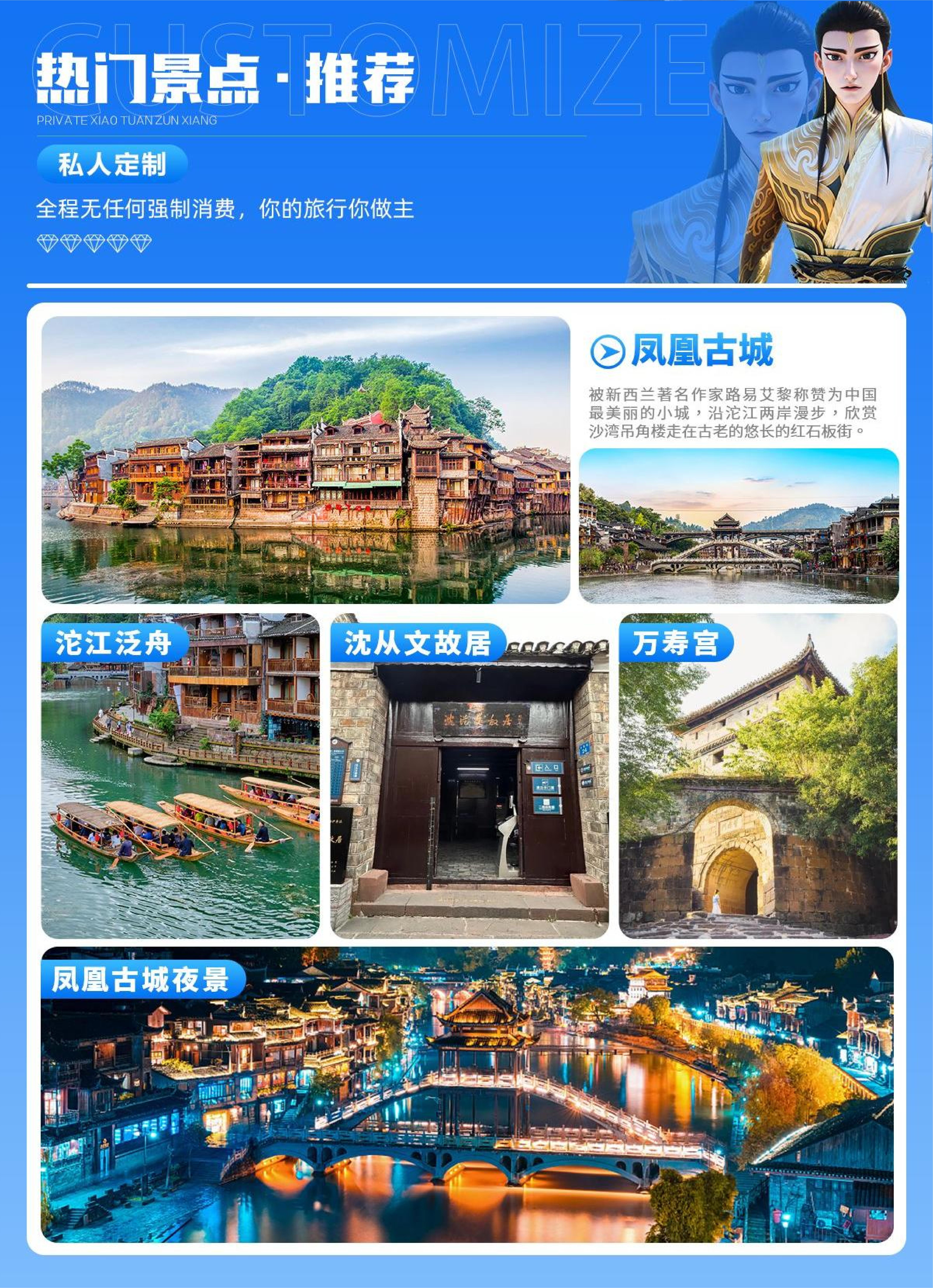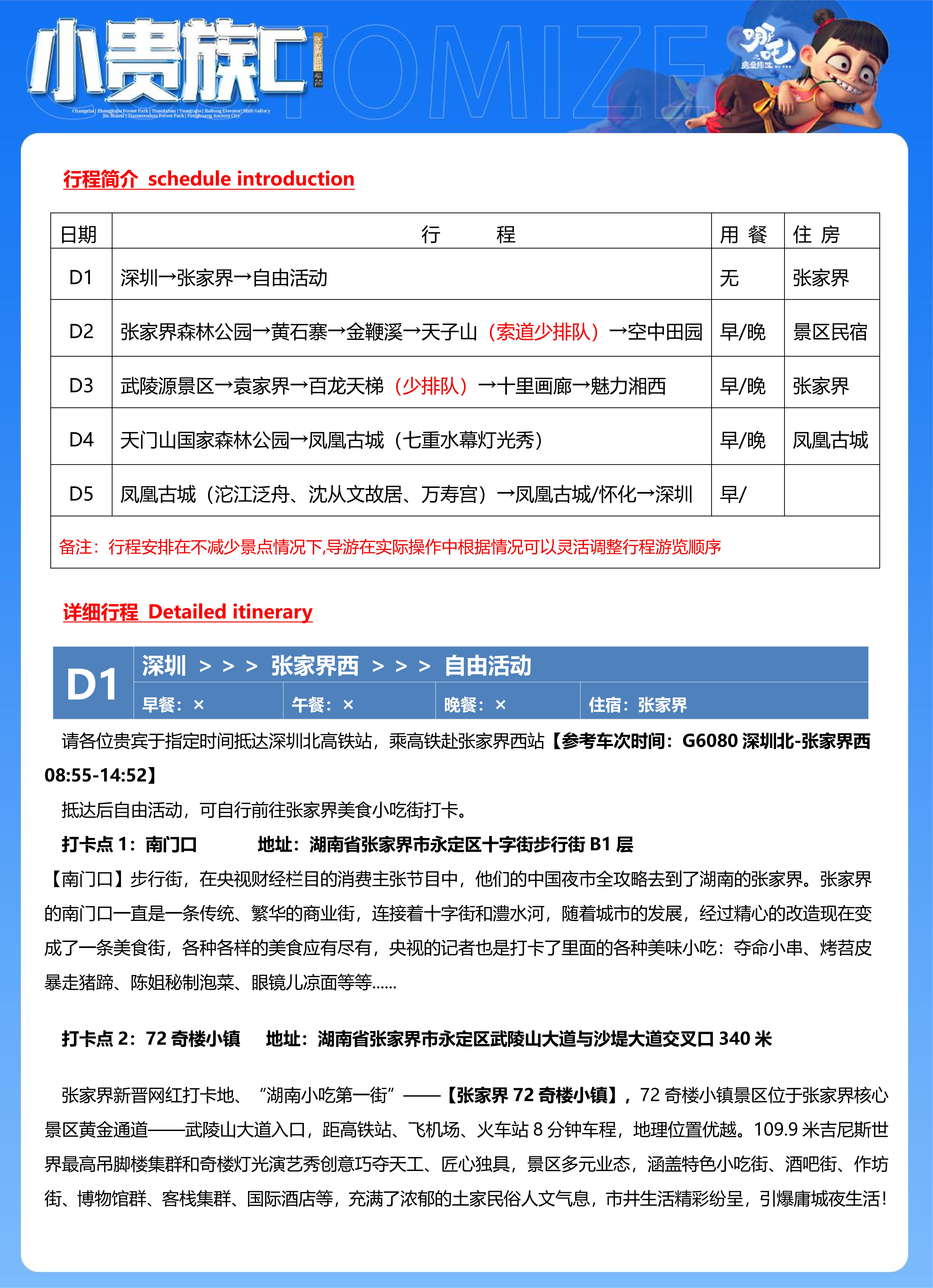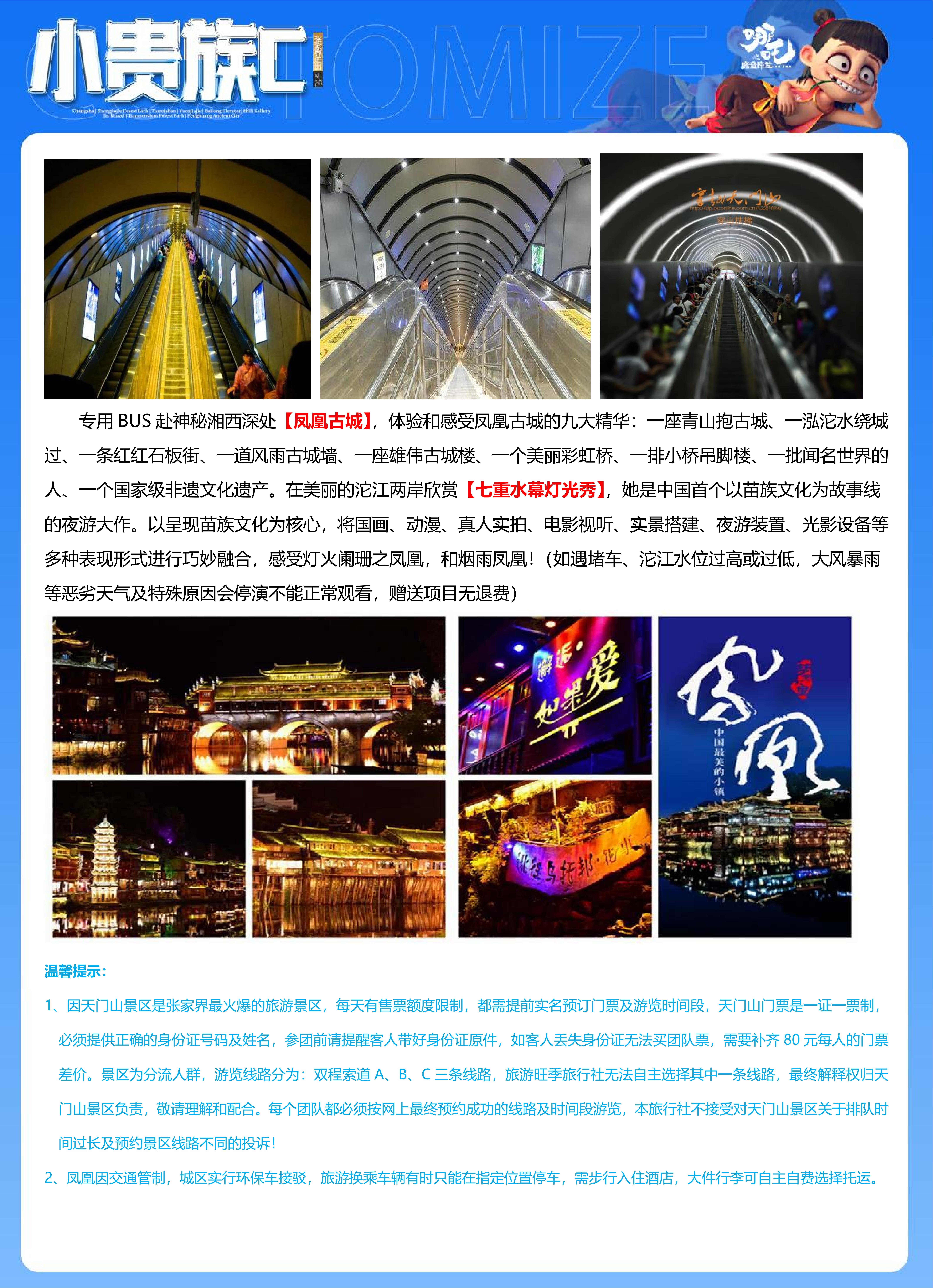 <湖南张家界+凤凰古城5天精致小团(2-10人)>张家界森林公园/黄石寨/天子山(空中田园)/袁家界/百龙电梯/十里画廊/金鞭溪/魅力湘西/天门山/凤凰古城(沱江泛舟、沈从文故居、万寿宫)