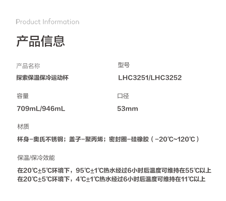 乐扣乐扣保温杯大容量户外运动水壶不锈钢学生儿童女水杯男士
