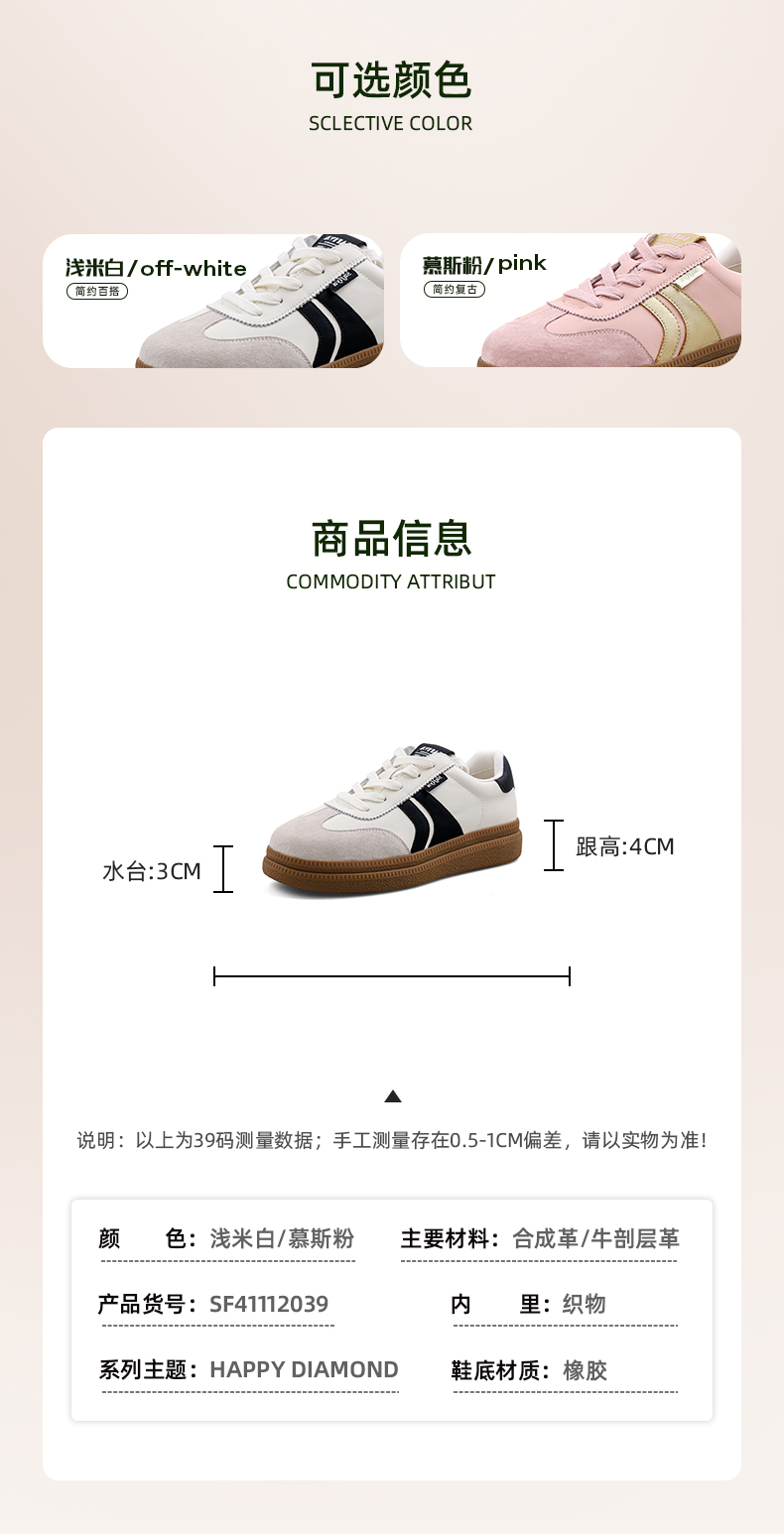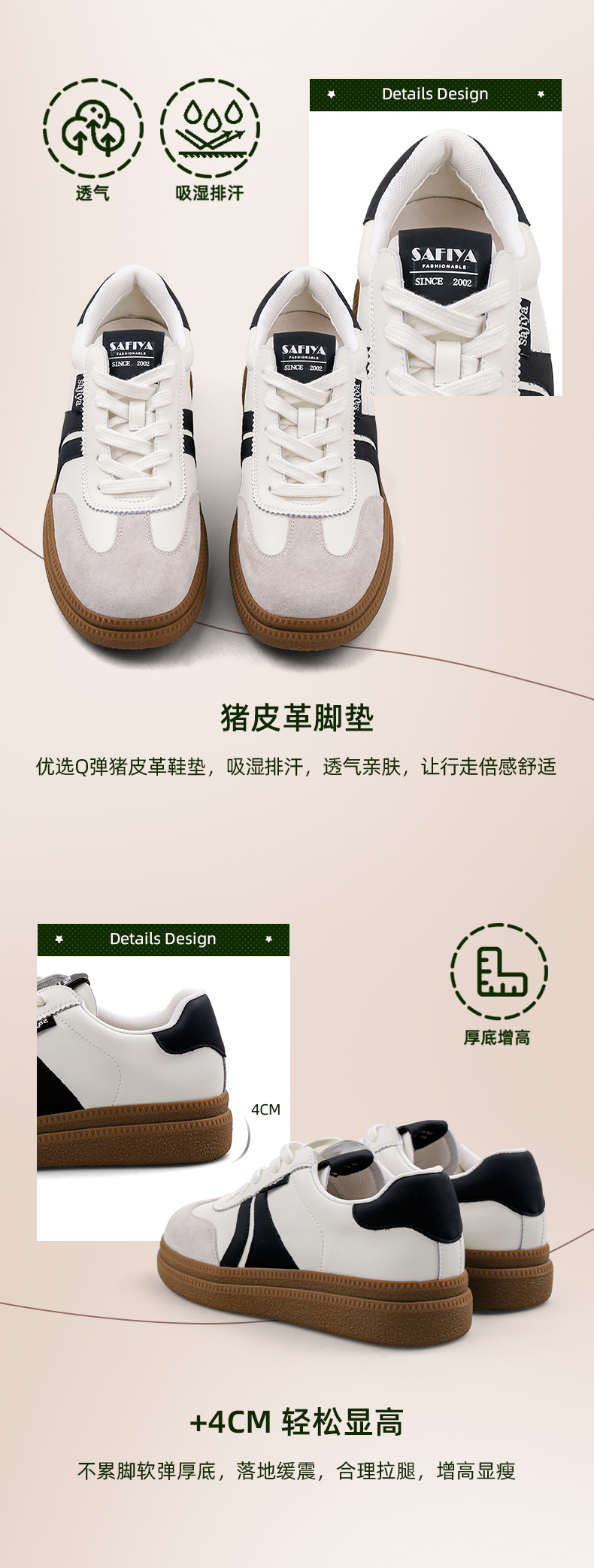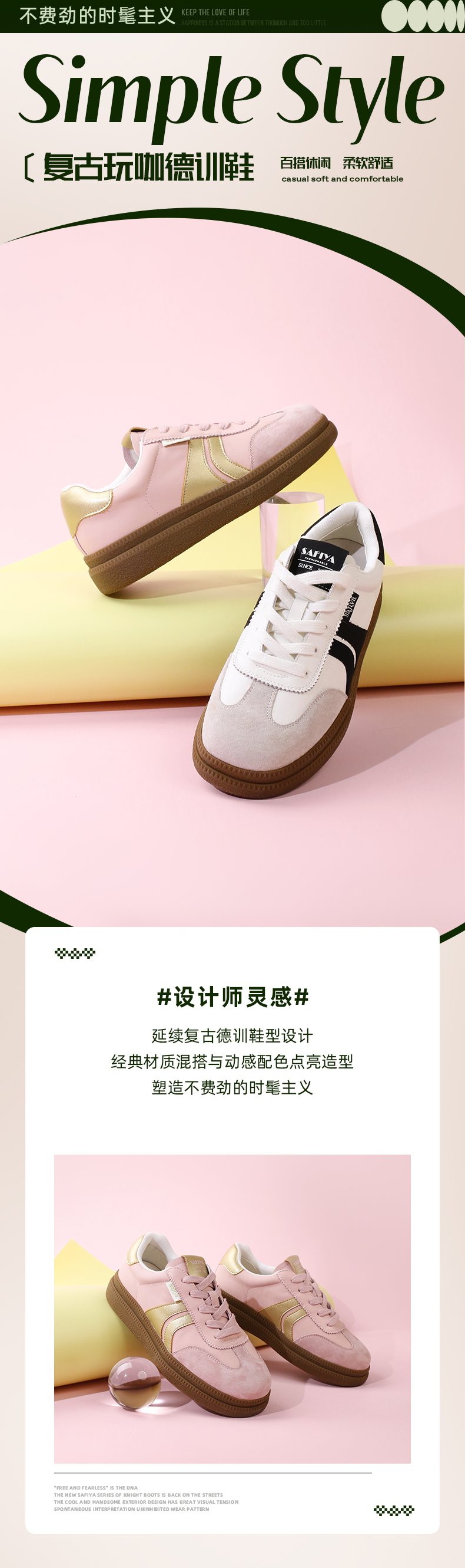Safiya/索菲娅2024春新款潮流拼色百搭休闲复古绒面软底德训鞋 SF41112039