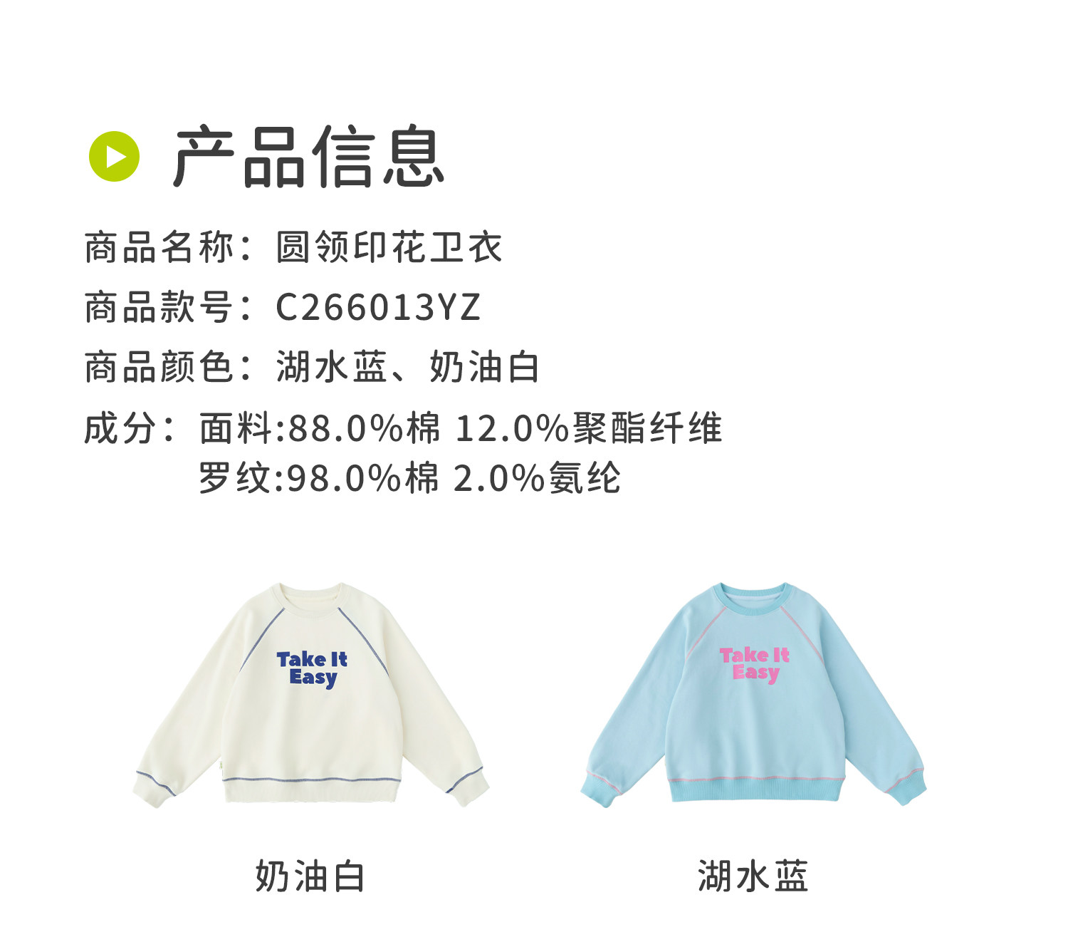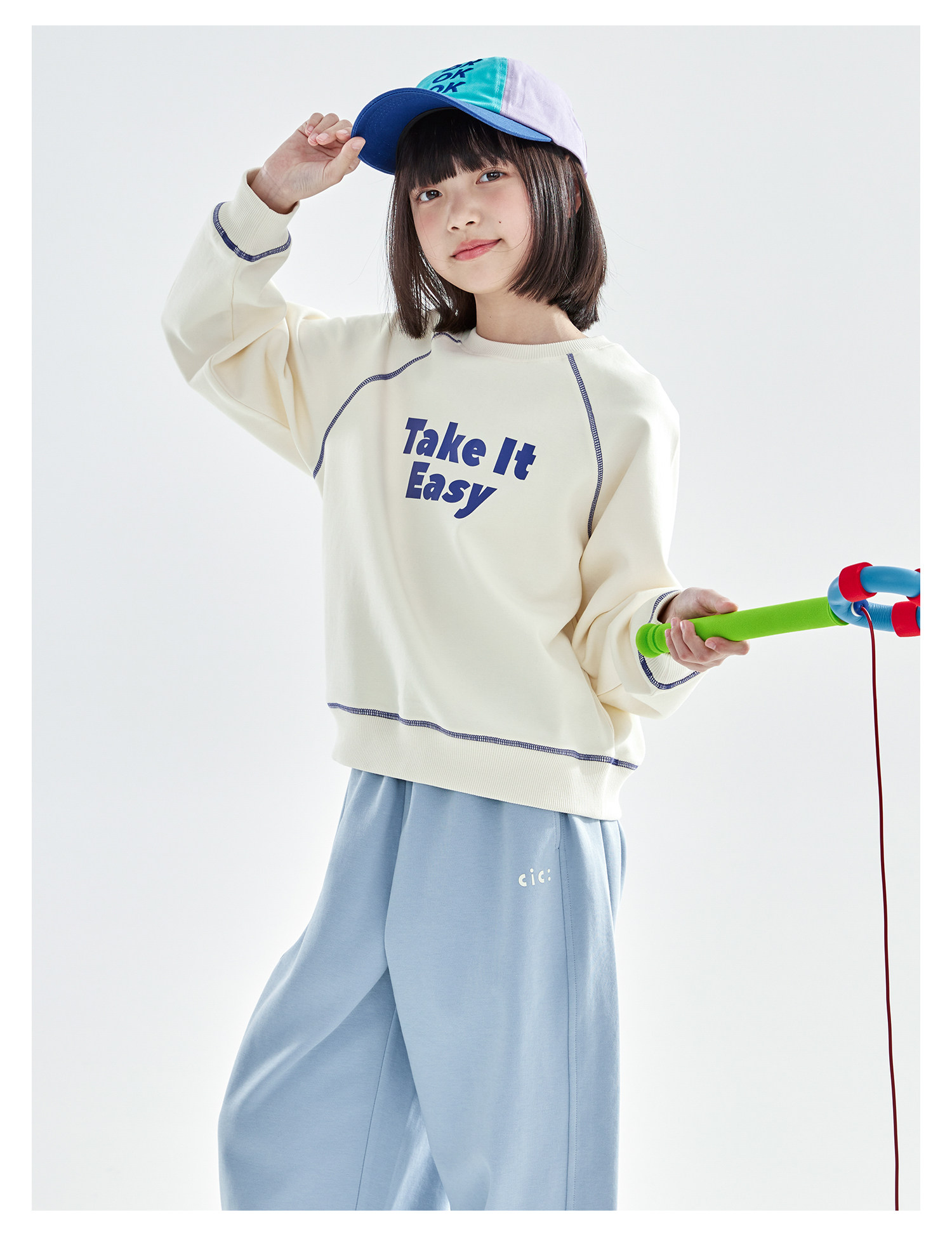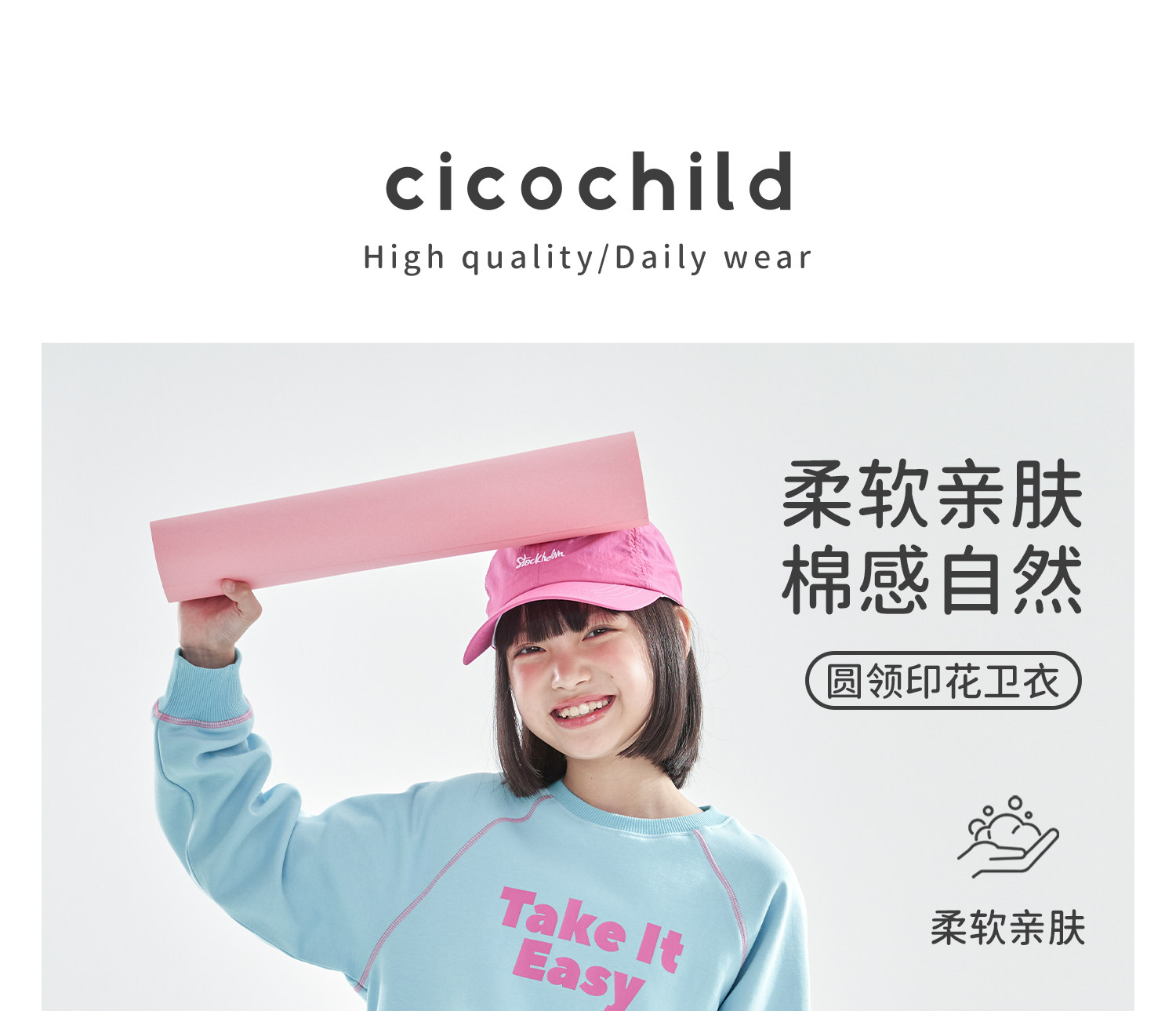 预售4.25发 cicochild26年春新款亲子中大女童圆领印花卫衣双面针织简约上衣