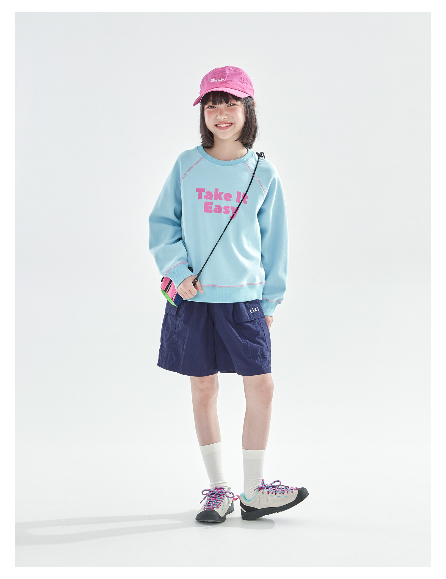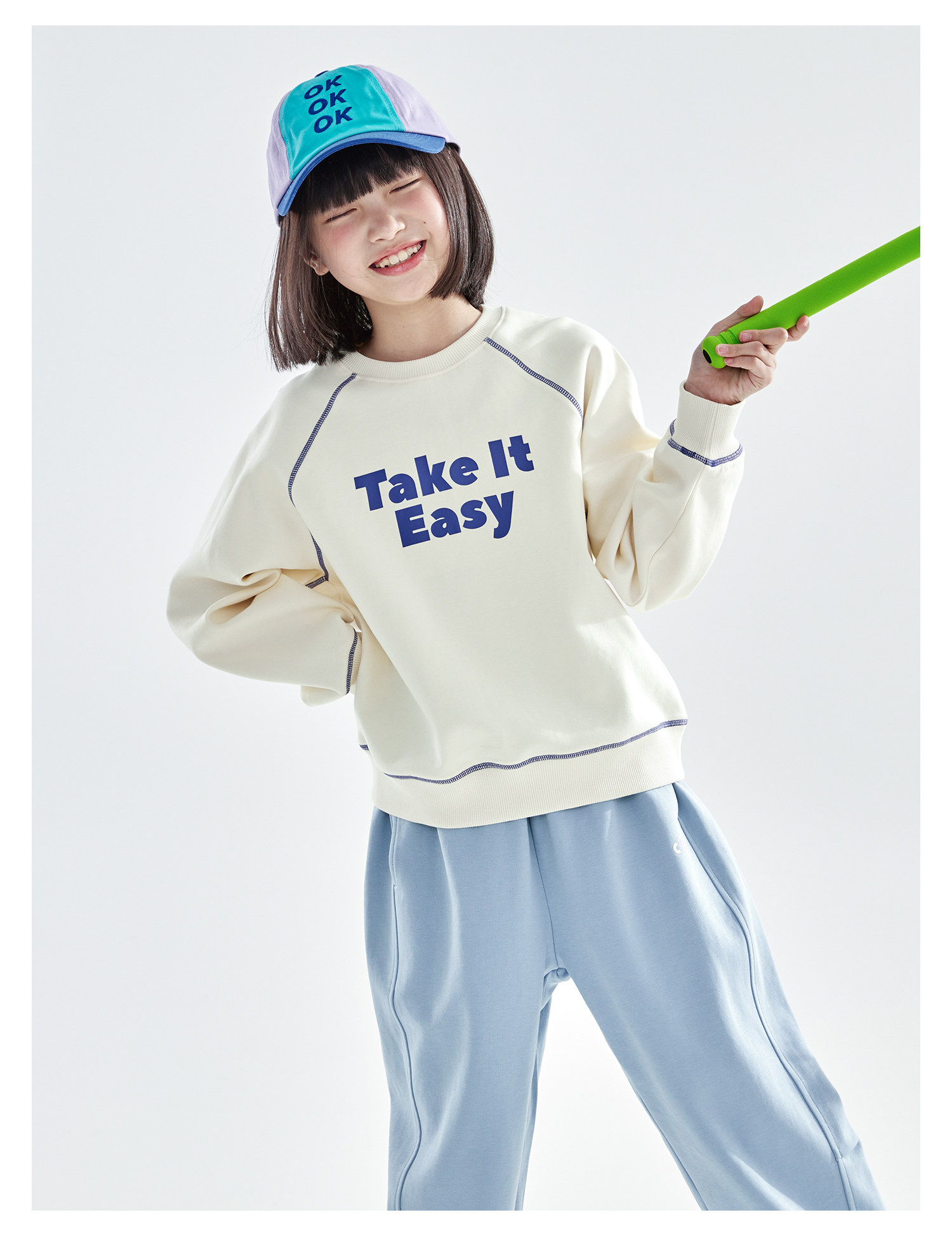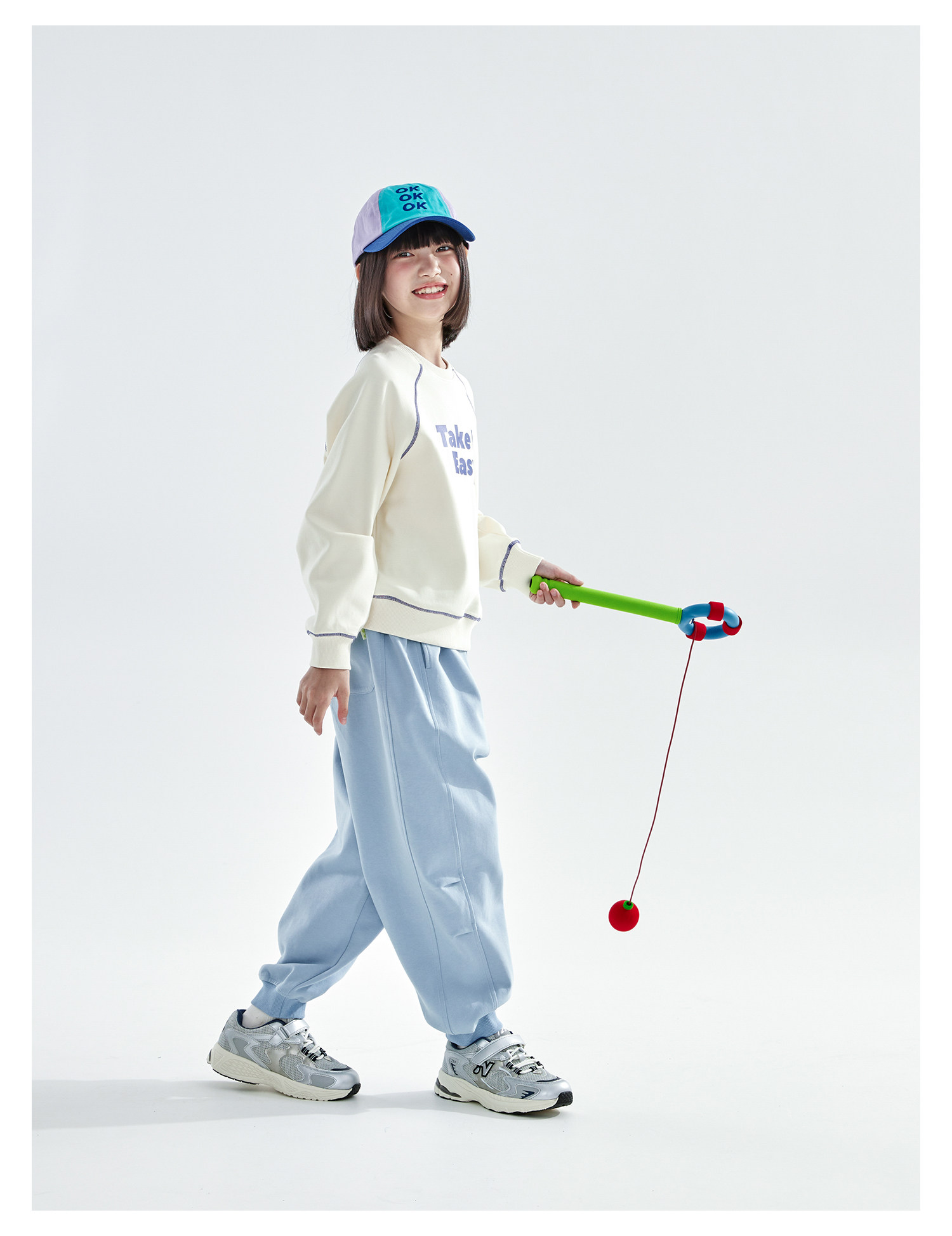预售4.25发 cicochild26年春新款亲子中大女童圆领印花卫衣双面针织简约上衣